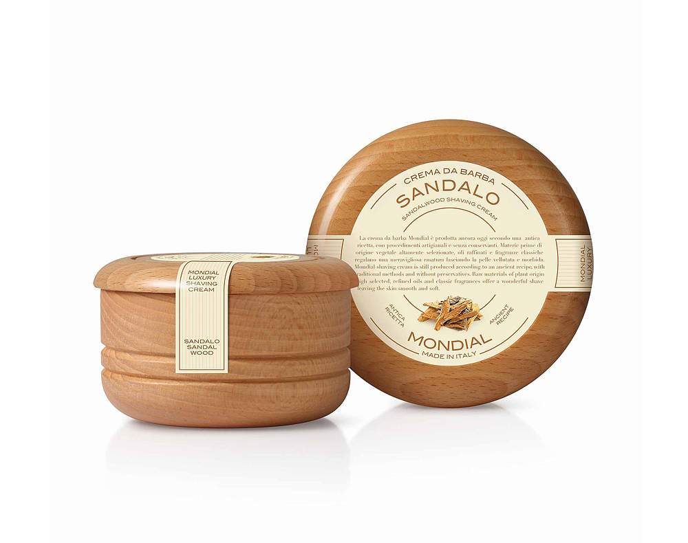 Крем для бритья Mondial "SANDALO" с ароматом сандалового дерева, деревянная чаша, 140 мл