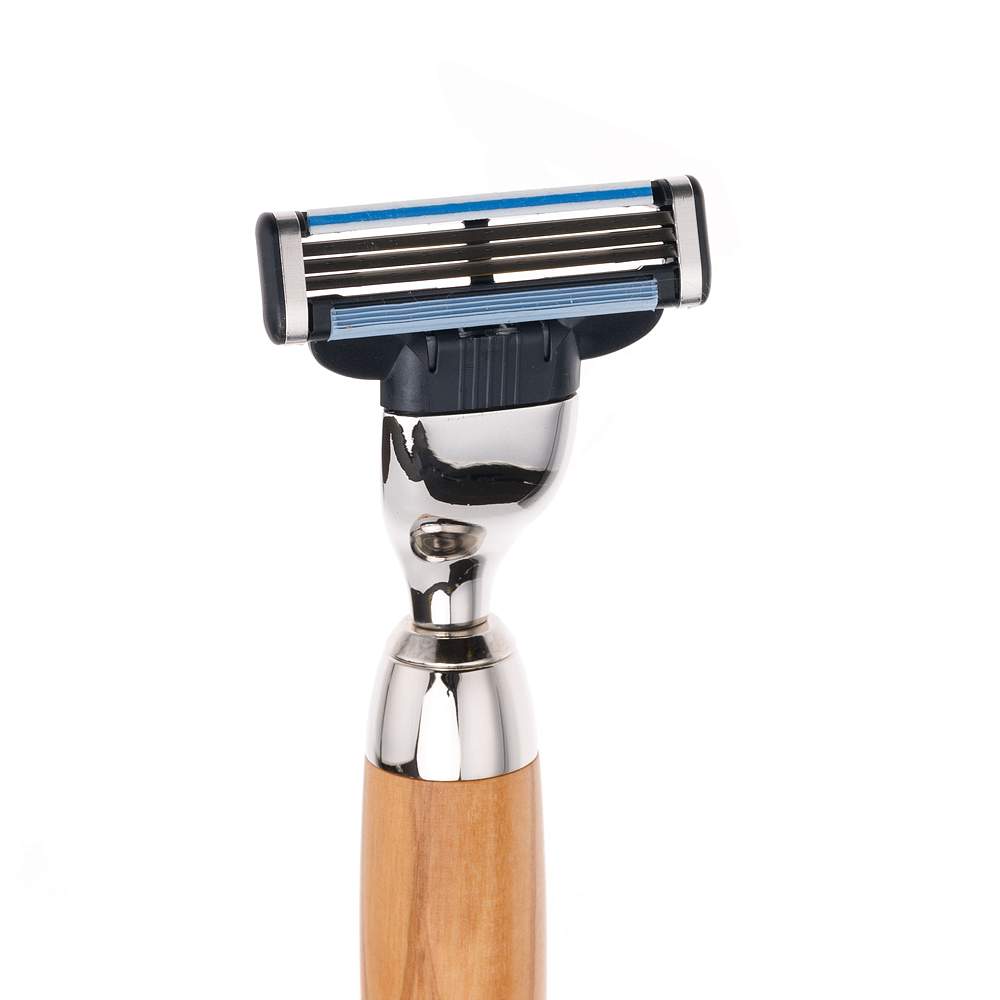 Набор из коллекции HERITAGE с помазком Tasso Tec / Best Badger из натурального барсучьего волоса, станок Gillette Mach 3 Turbо и чаша. Материал - традиционное оливковое дерево