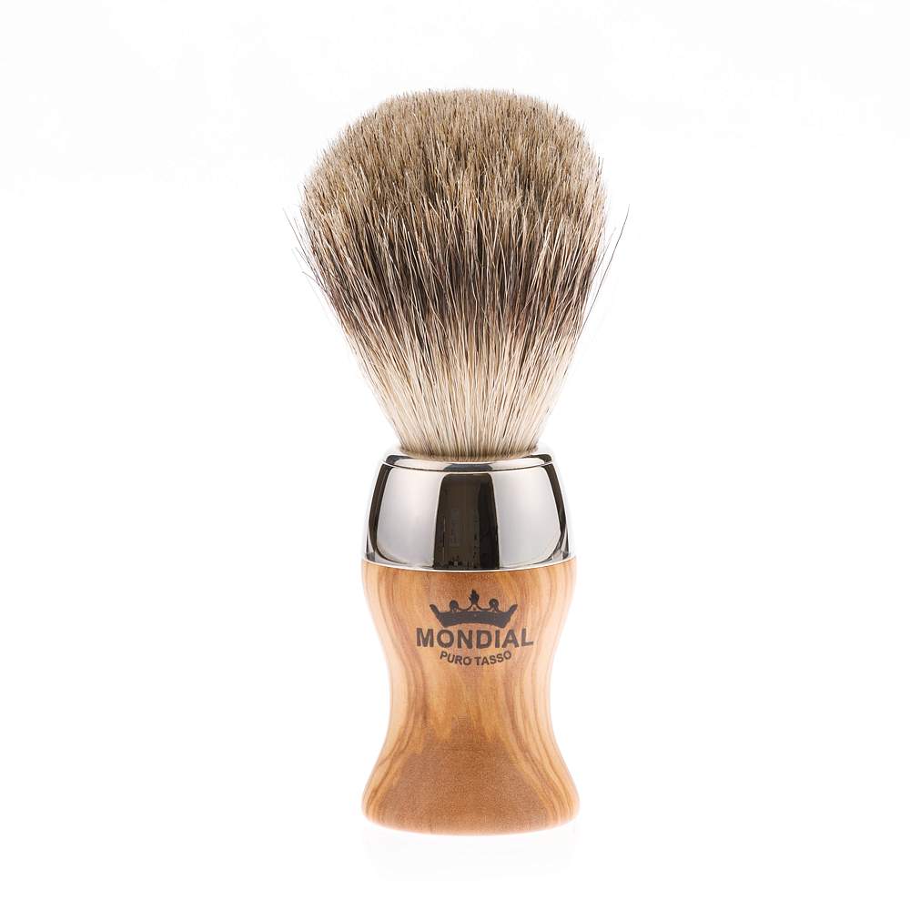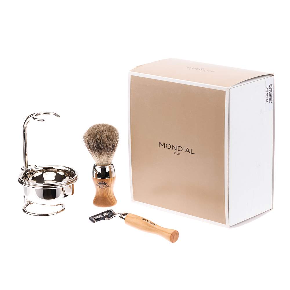 Бритвенный набор Mondial: станок, помазок, чаша, подставка; оливковое дерево ST-445-OMT