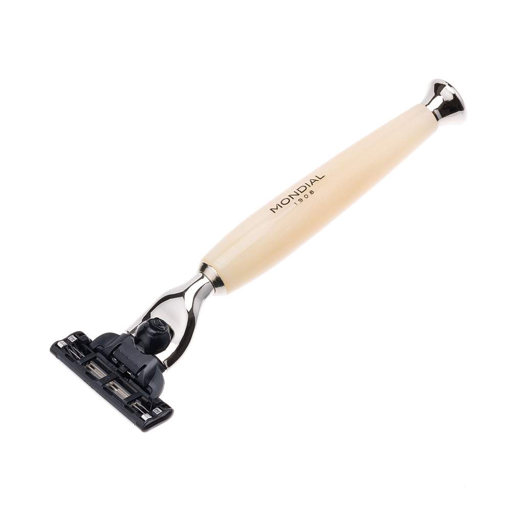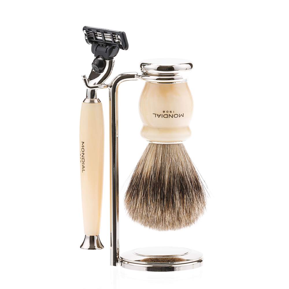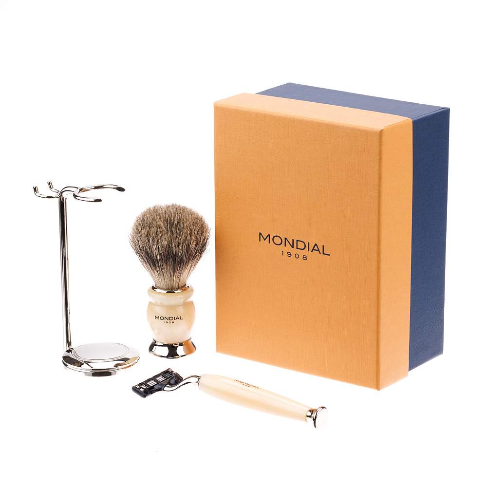 Бритвенный набор Mondial: станок, помазок, подставка; айвори