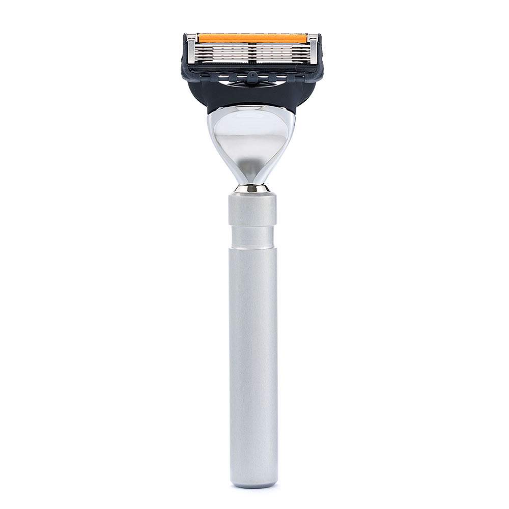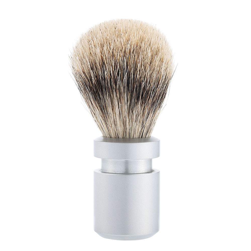 Бритвенный набор IL Ceppo: станок, помазок, подставка, чаша, алюминий/никелированная латунь, FUSION, натуральный ворс барсука BEST BADGER, размер узла M (22 мм), серебристый, в картонной коробке