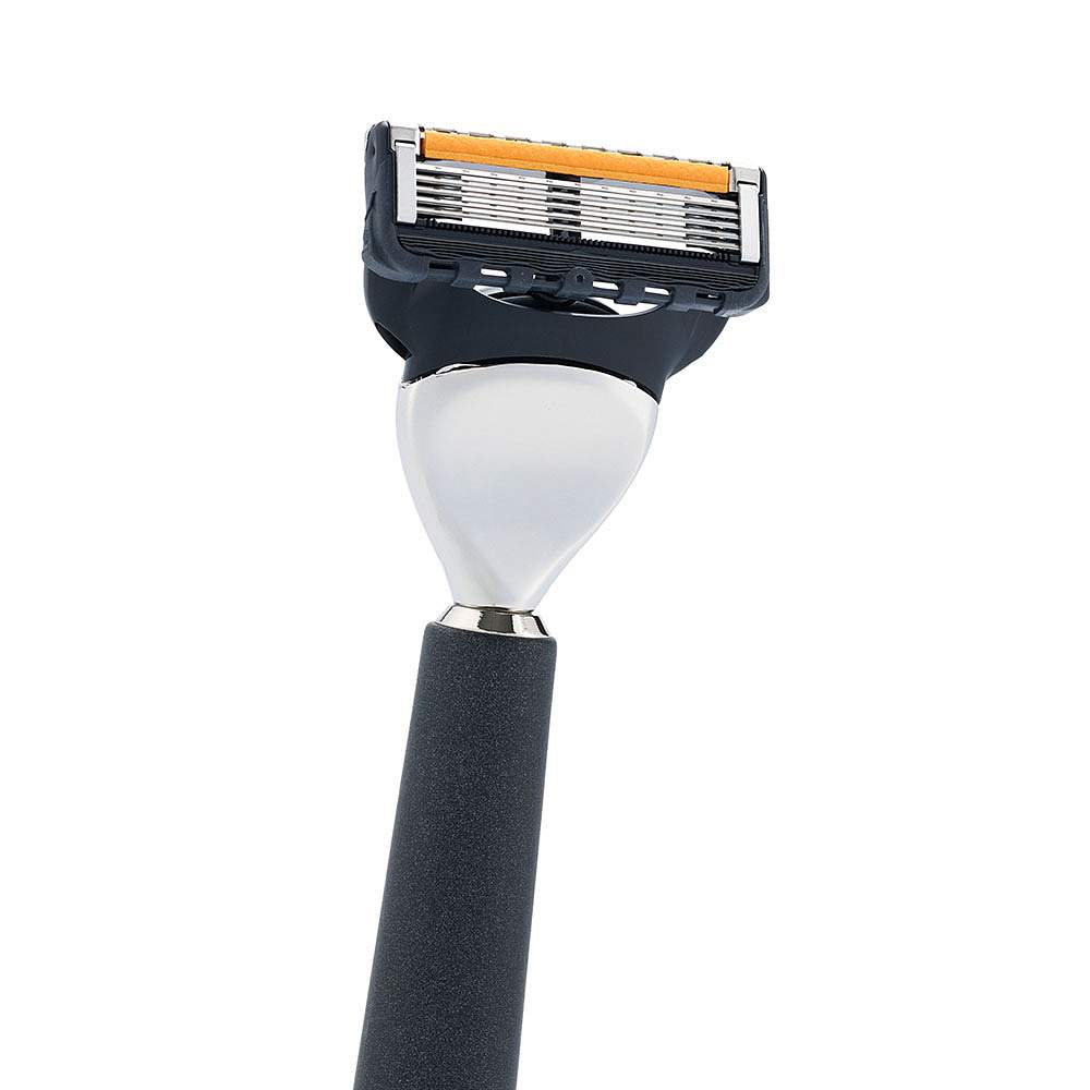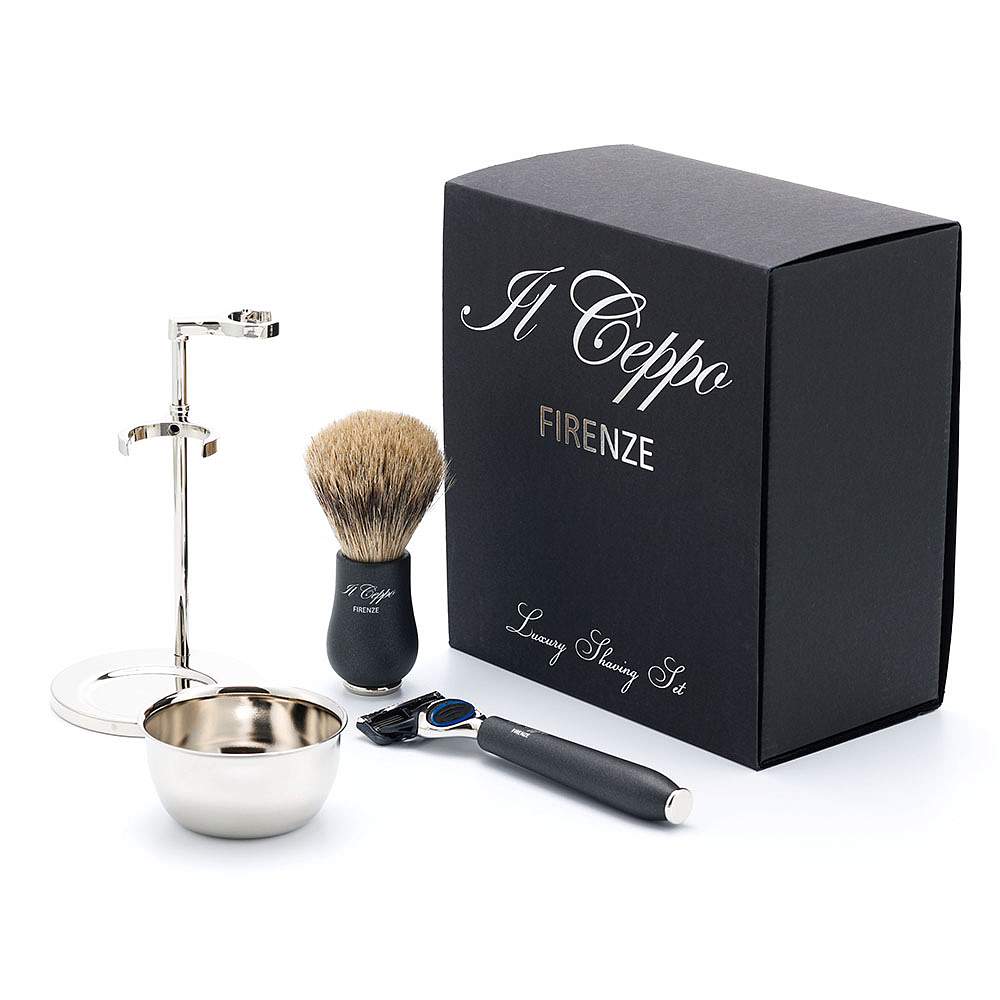 Бритвенный набор IL Ceppo: станок, помазок, подставка, чаша, качуковая смола/никелированная латунь, FUSION, натуральный ворс барсука BEST BADGER, размер узла M (22 мм), цвет антрацит, в картонной коробке
