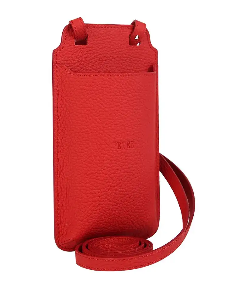 Сумка-чехол для телефона от Petek изготовлена из высококачественной натуральной кожи и имеет форму планшета. Она носится на плече с помощью регулируемого ремня, что обеспечивает удобство при использовании.