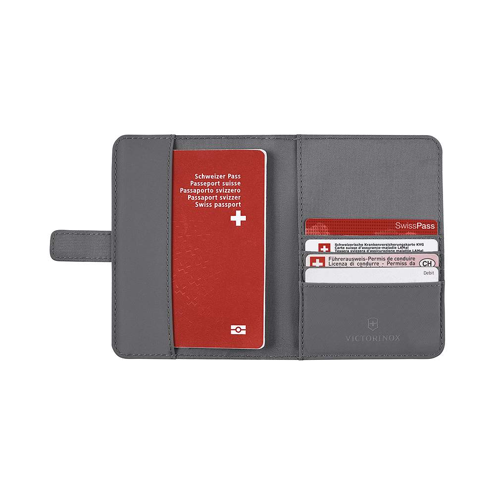 Обложка для паспорта VICTORINOX Travel Essentials, с защитой от сканирования RFID, серая, полиэстер, 11x1x15 см 653362