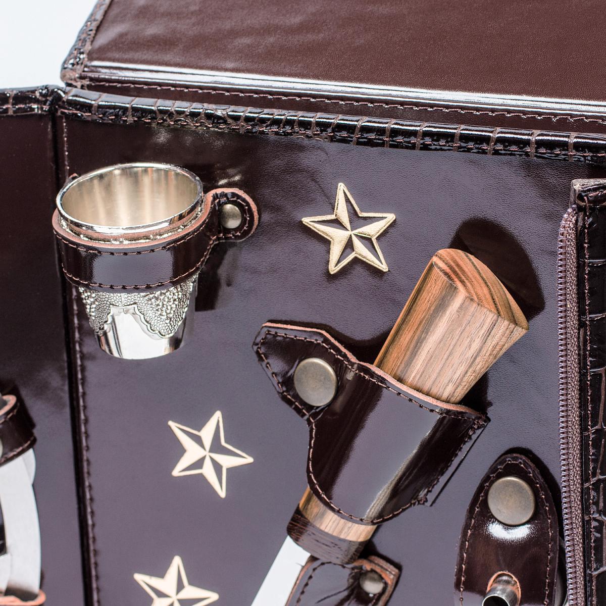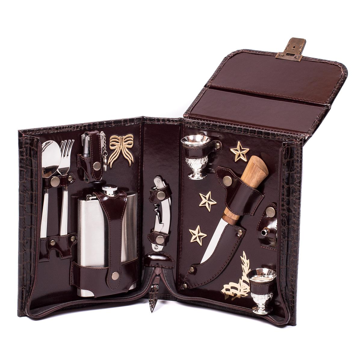 Подарочный набор «Командир» в кожаной сумке-кейсе (2 персоны) версия AKSO 221КК2–2
