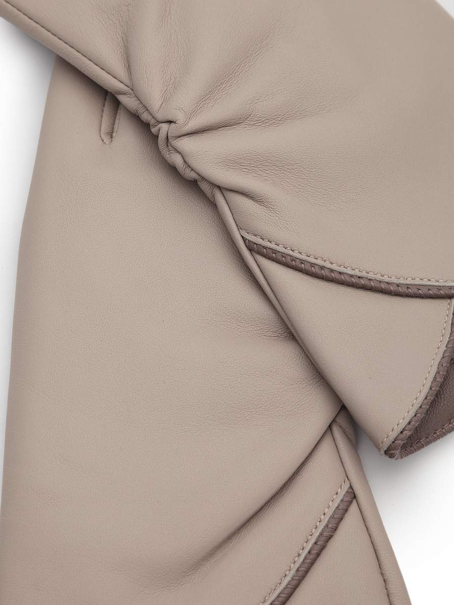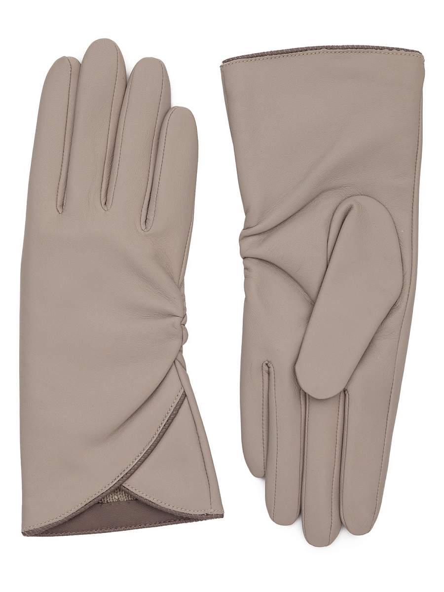 Перчатки женские торговой марки LABBRA производства Китай. Выполнены из натуральной кожи ягненка. Подкладка - 70% шерсть, 30% акрил. Отделка - декоративный V-образный декор с контрастным кантом на лицевой стороне и женственная драпировка по линии внешнего шва. Длина манжеты от нижней точки большого пальца до края перчаток - 7,5 см. Длина пальцев - средняя.