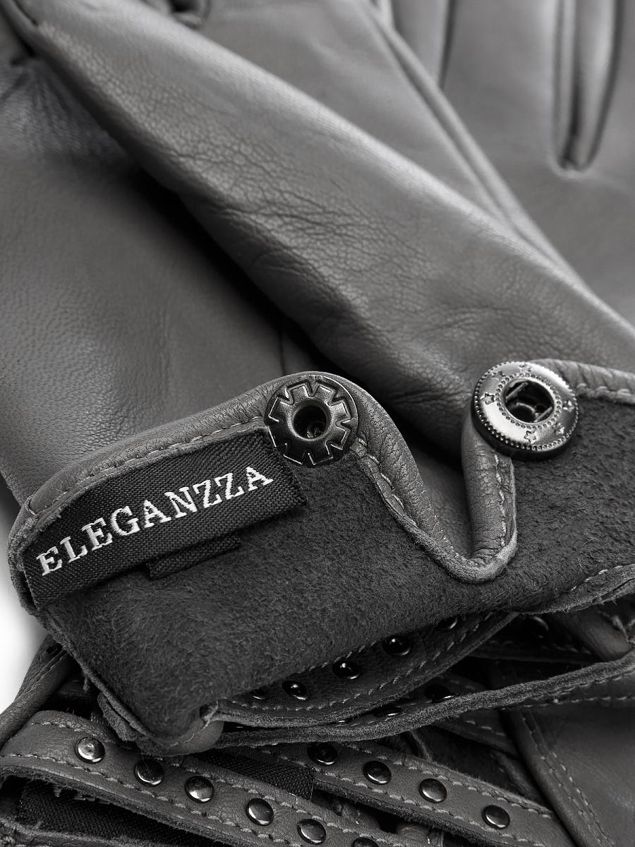 Перчатки торговой марки ELEGANZZA выполнены из кожи ягнёнка производства Италия. Без подкладки. Отделка - декоративные хольнитены и перфорация на лицевой стороне изделия. На ладонной части рабочая кнопка, обтянута кожей основного цвета. Длина манжеты от нижней точки большого пальца до края перчаток - 2,5 см. Длина пальцев - средняя.