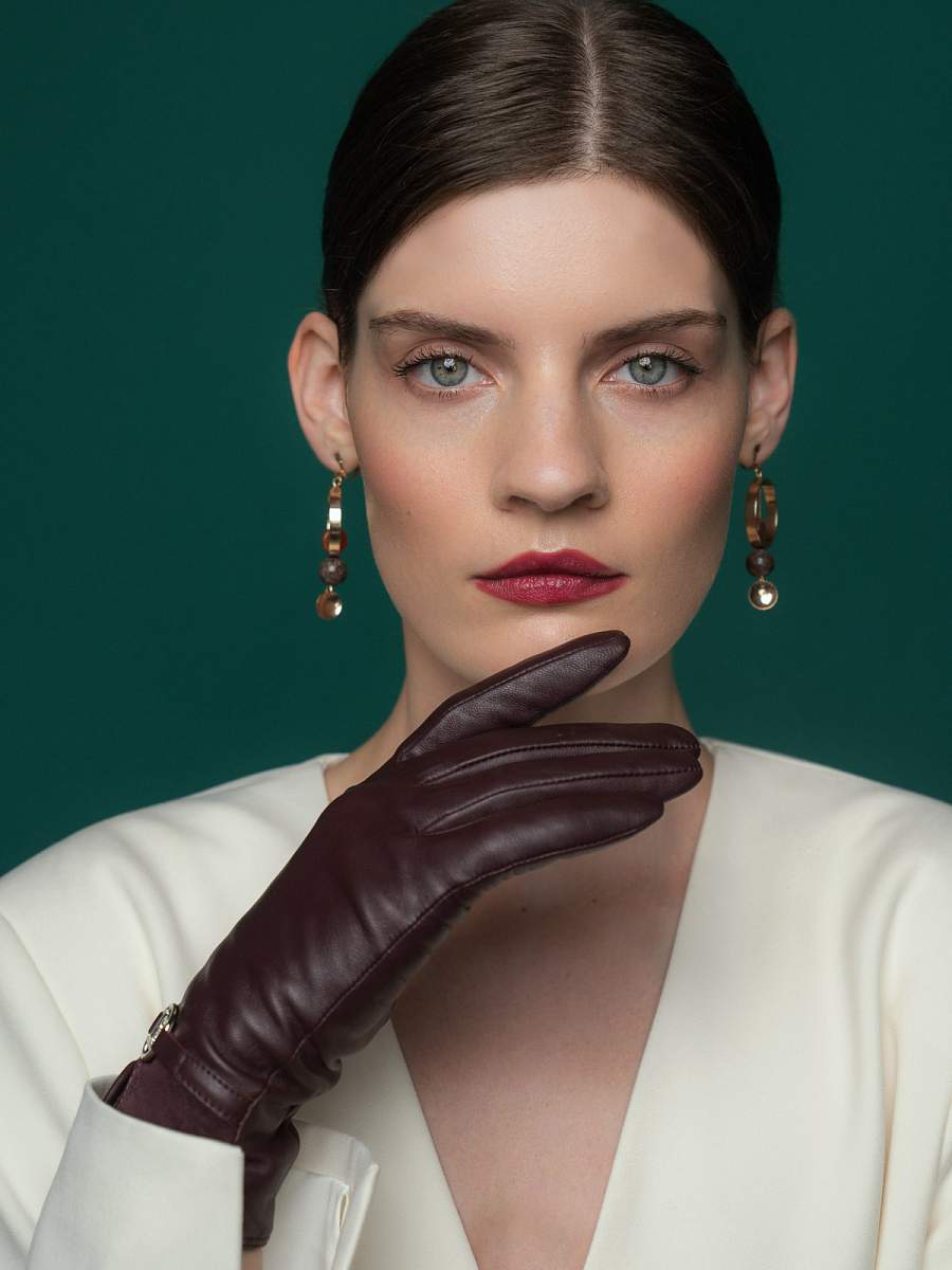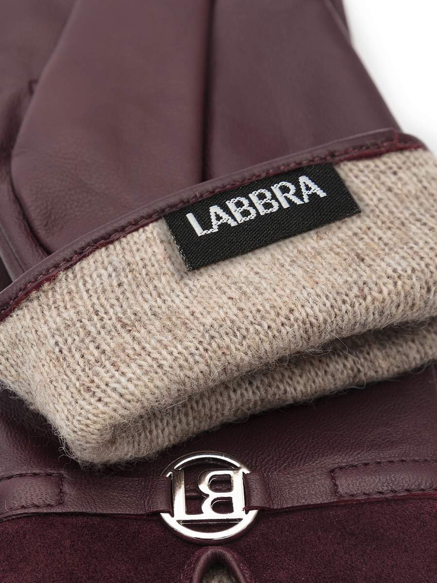 Перчатки женские торговой марки LABBRA производства Китай. Выполнены из натуральной кожи ягненка. Подкладка: 70% шерсть + 30% акрил. Перчатка выполнена из кожи с отделкой из велюра на манжете. В области запястья украшена декоративным ремешком с фурнитурой с фирменной символикой по центру. Длина манжеты от нижней точки большого пальца до края перчаток - 6 см. Длина пальцев - средняя.