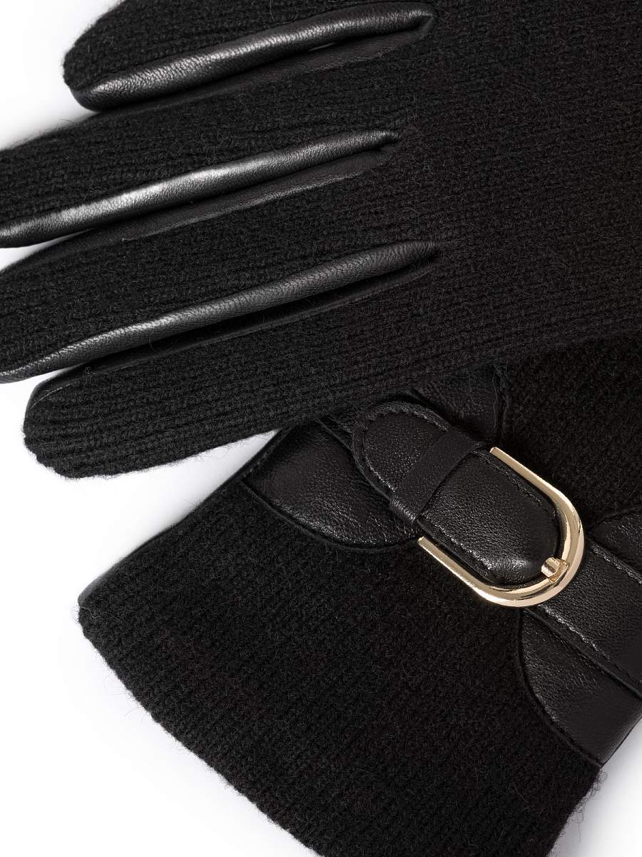 Перчатки женские торговой марки LABBRA. Выполнены из высококачественной натуральной кожи ягненка и шерстяного трикотажа. Дополнены подкладом из мягкой смесовой шерсти. Урашены декоративным кожаным ремнем с золотистой фурнитурой, подчеркивающим линию манжеты. Модель со средней длиной пальцев и длиной манжеты от нижней точки большого пальца до края перчаток - 6 см.