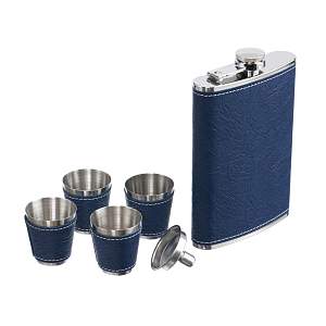 Набор S.Quire фляга 0,24 л, 4 стопки, воронка, сталь, искусственная кожа, синий FLS008