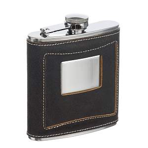 Фляга S.Quire 0,18 л, сталь+натуральная кожа, коричневая HA03-6