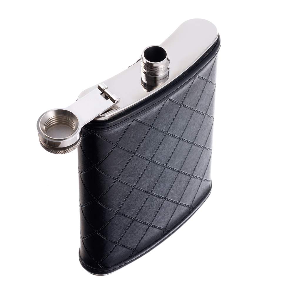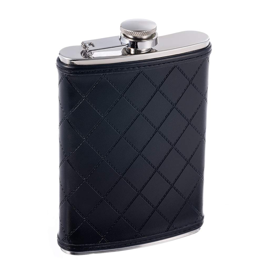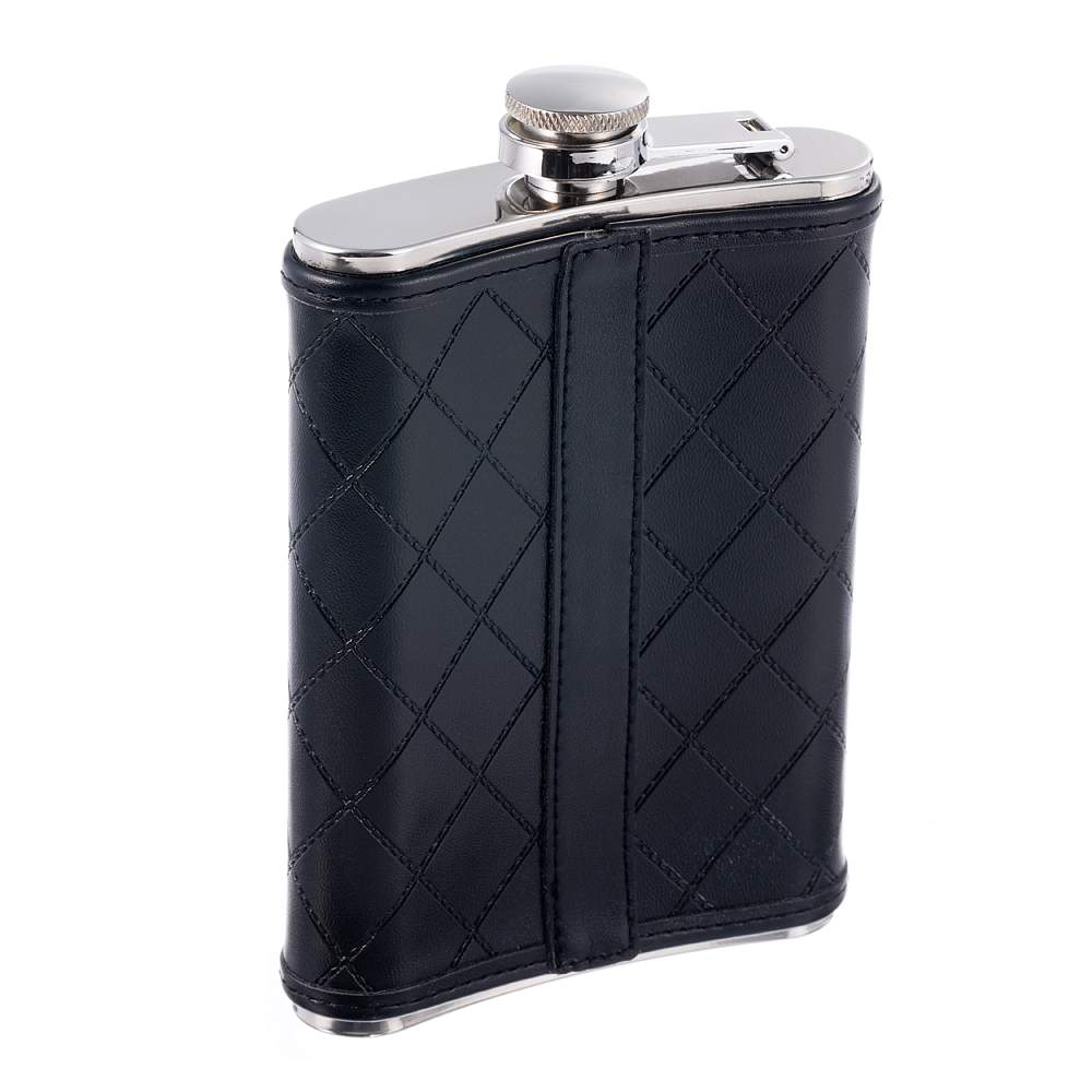 Фляга S.Quire 0,24 л, сталь+искусственная кожа, черная 64W1-8