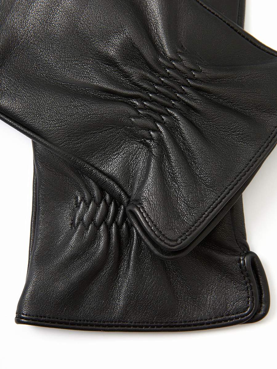 Перчатки торговой марки ELEGANZZA производства Китай черного цвета. Подкладка: 100% шерсть. Боковой разрез на манжете, облегчающий вход; резинка на лицевой части, фиксирующая запястье. Длина манжеты от нижней точки большого пальца до края перчаток составляет 5 см. Длина пальцев - средняя.