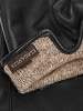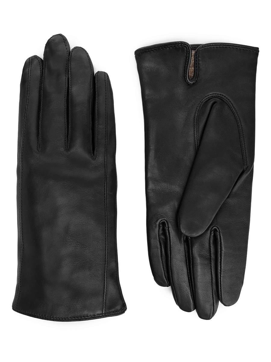 Перчатки торговой марки ELEGANZZA выполнены из кожи ягнёнка черного цвета производства Италии. Подкладка: шерсть+кашемир. Отделка - декоративные швы от нижнего края перчатки до кончиков мизинца и указательного пальцев. Нижний край перчатки и разрез на ладонной стороне (глубина 3,5 см) окантованы. Длина манжеты от нижней точки большого пальца до края перчаток - 4 см. Длина пальцев - средние.