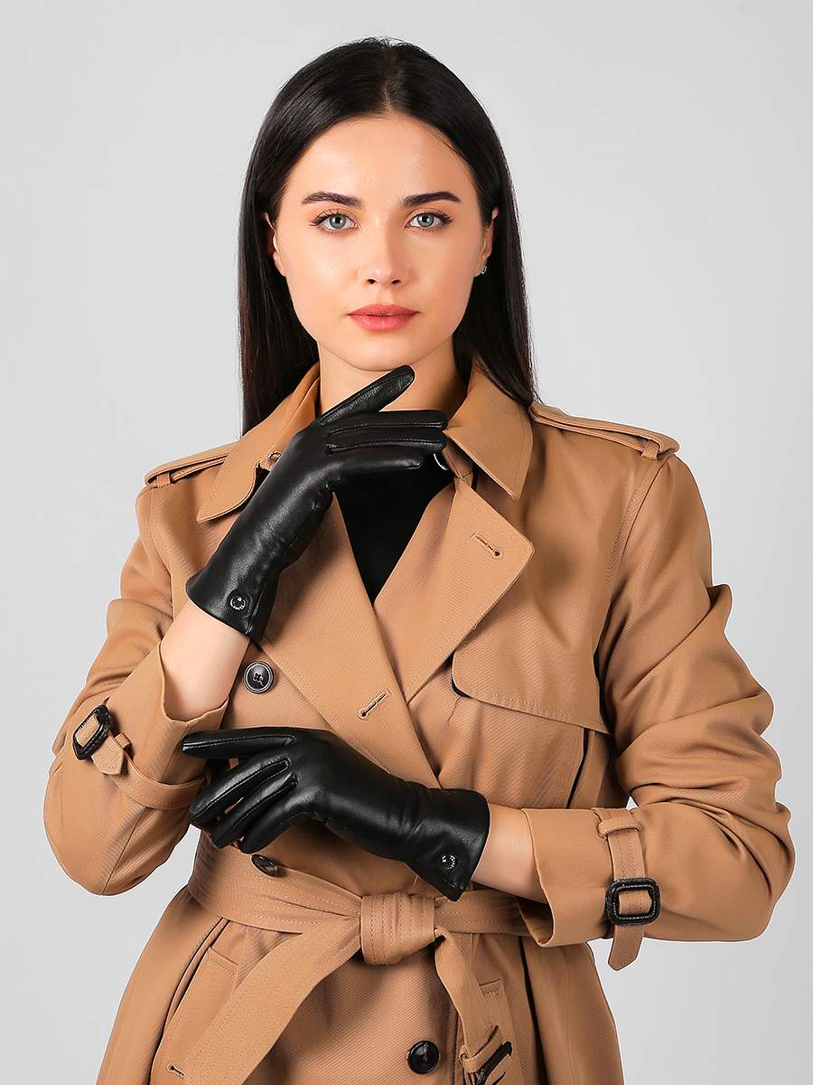 F14-1 black FABRETTI Перчатки жен. нат. кожа (размер 6.5)