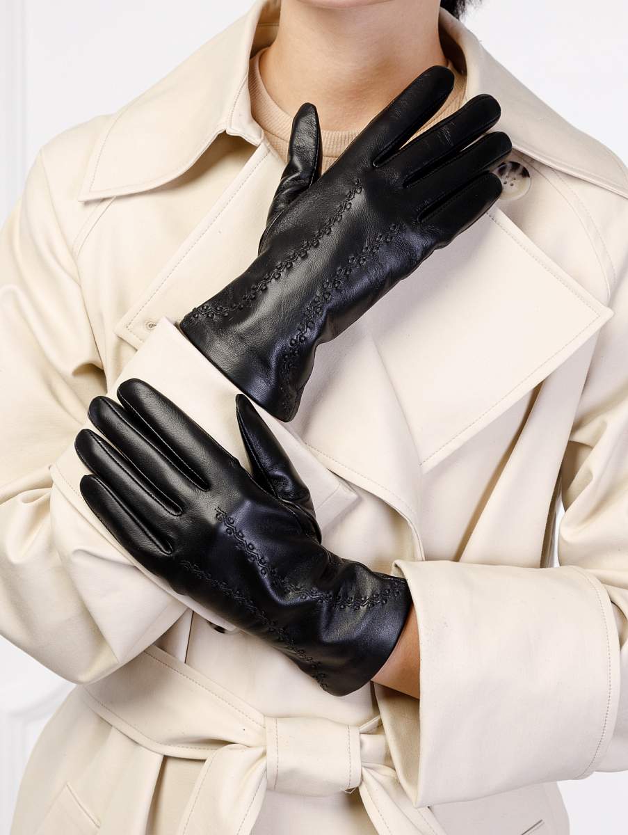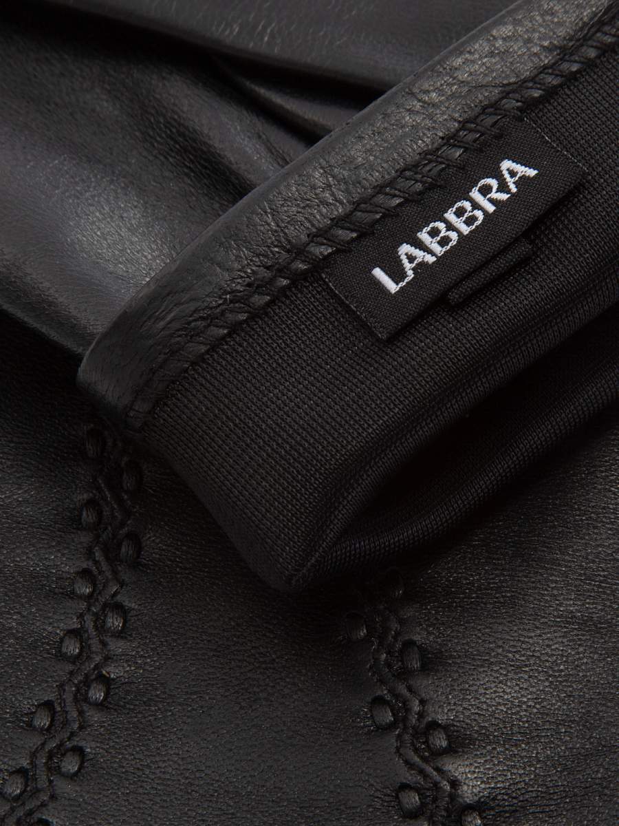 Перчатки женские торговой марки LABBRA производства Китай. Выполнены из натуральной кожи ягненка. Подкладка: шелк. Отделка - декоративные машинные швы и продежка тонким кожаным шнурком. Длина манжеты от нижней точки большого пальца до края перчаток - 6 см. Длина пальцев - средняя.