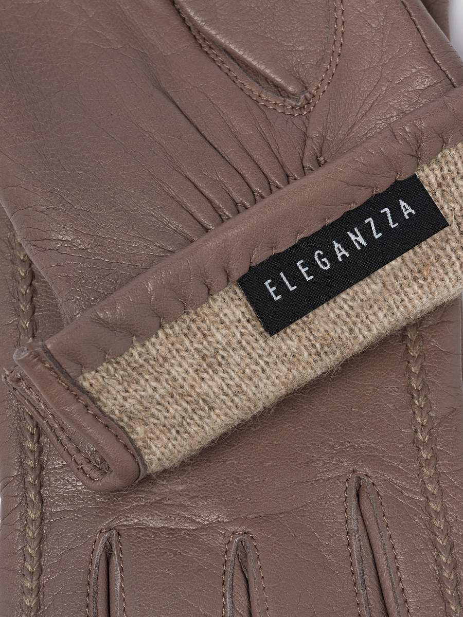Перчатки женские торговой марки ELEGANZZA из натуральной кожи ягненка производства Италии. Подкладка: 85% шерсти, 15% кашемира. Декоративные швы на лицевой стороне; разрез сбоку, который упрощает вход. Длина манжеты от нижней точки большого пальца до края перчаток составляет - 8 см. Пальцы укороченные.