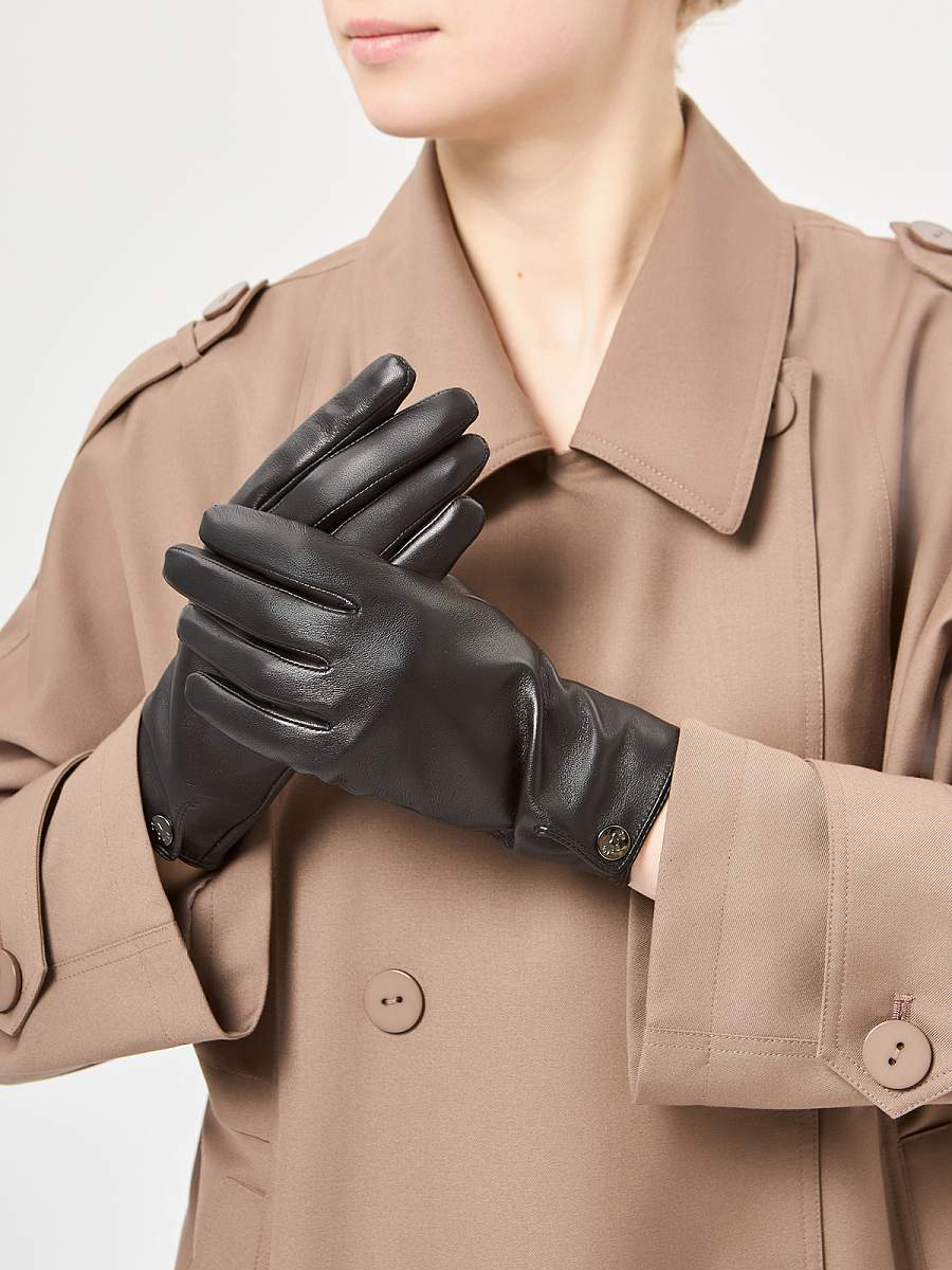 Перчатки женские торговой марки LABBRA из натуральной кожи ягненка. Производство Китай. Подкладка: шелк. Отделка - на лицевой части перчатки разрез с фирменной кнопкой. Длина манжеты от нижней точки большого пальца до края перчаток - 6.5 см. Длина пальцев - средняя.