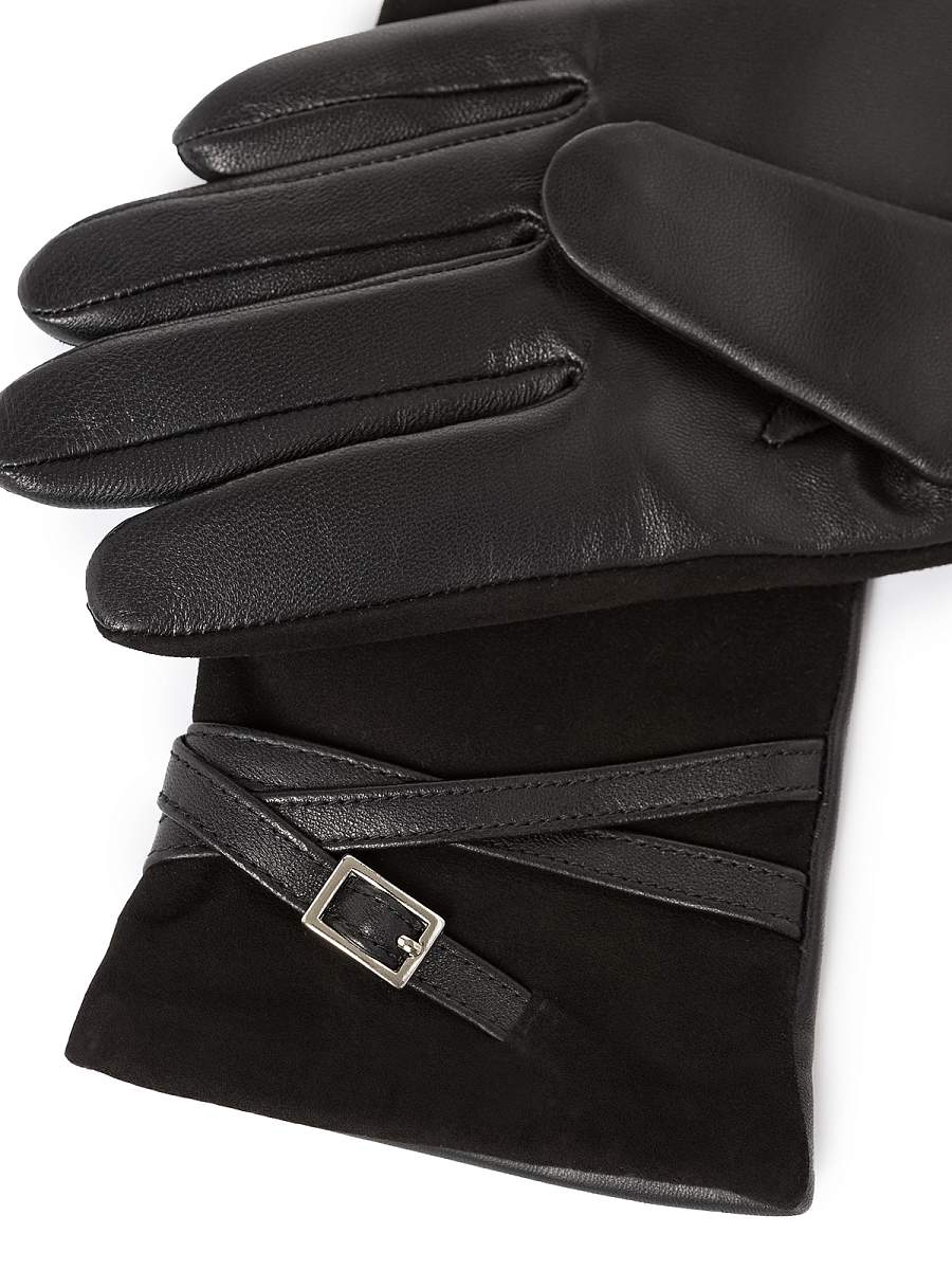 Перчатки женские торговой марки LABBRA. Выполнены из высококачественной кожи ягненка и натурального велюра в тон изделия. Дополнены смесовым шерстяным подкладом. Украшены декоративными тонкими ремешками и минималистичной пряжкой на манжете. Модель со средней длиной пальцев и длиной манжеты от нижней точки большого пальца до края перчаток - 6 см.