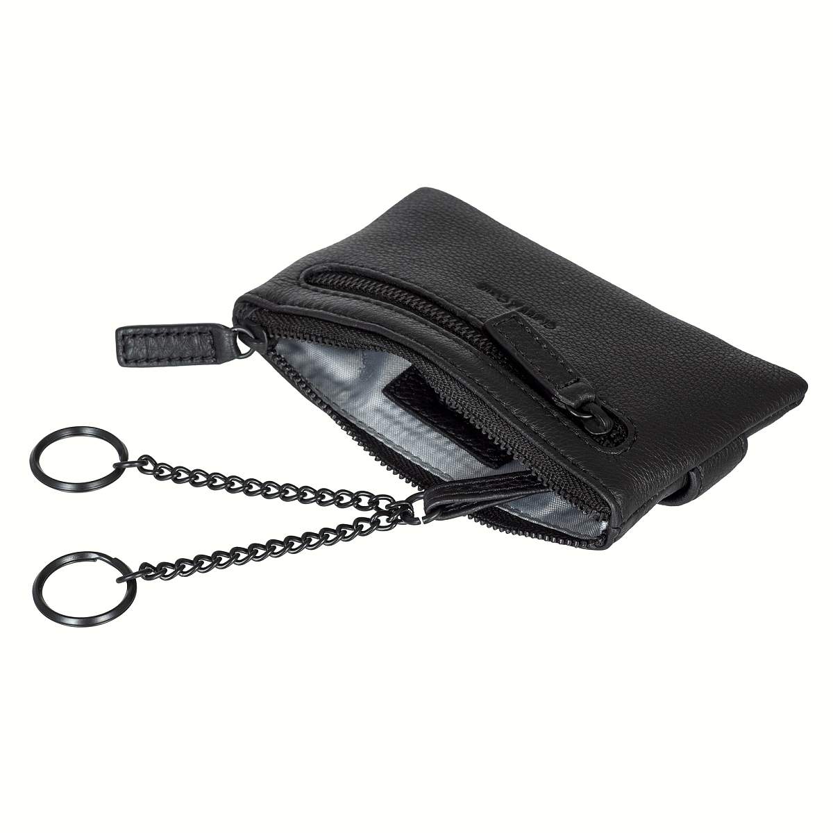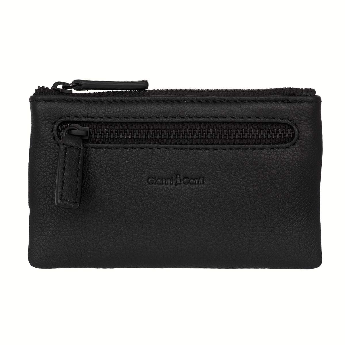 Ключница Gianni Conti из натуральной кожи, закрывается на молнию. Внутри два кольца для ключей. Снаружи, на передней стенке, карман на молнии. На задней стенке четыре кармашка для пластиковых карт, перекрывается клапаном на кнопке.