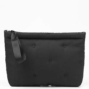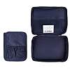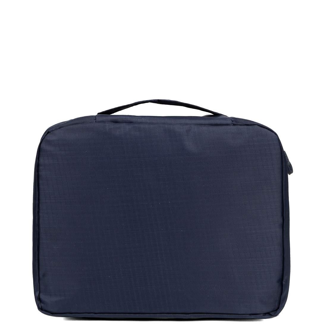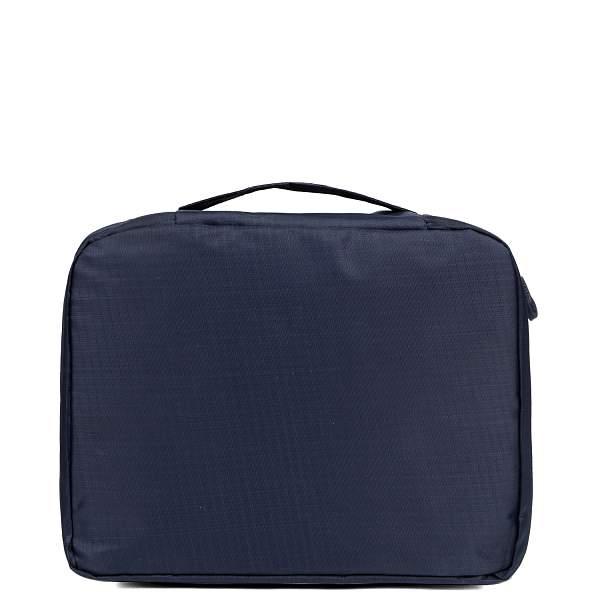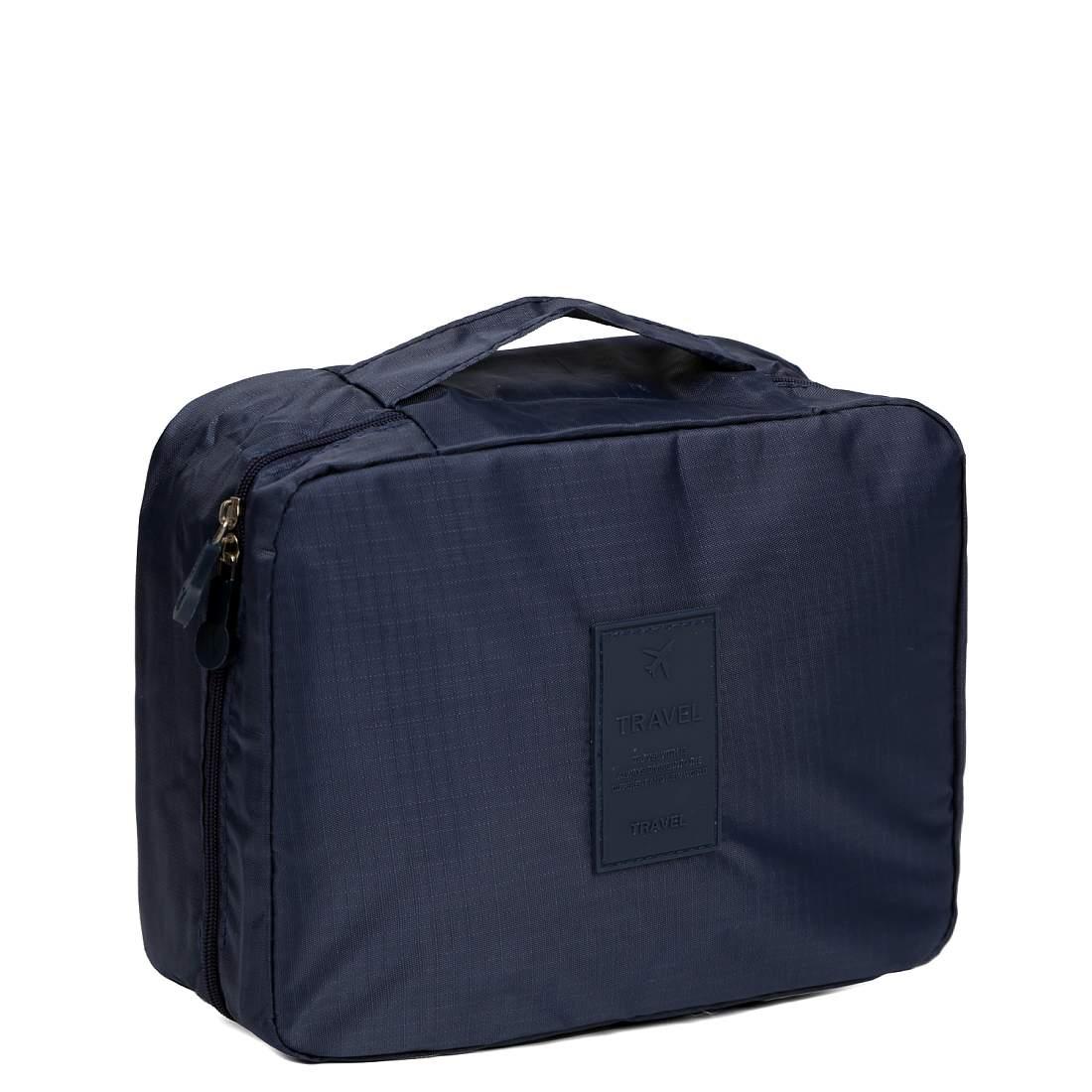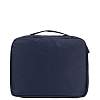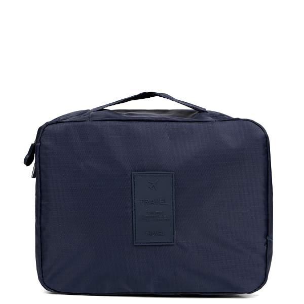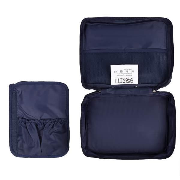 Компактная косметичка FABRETTI в темно-синем цвете выполнена из высококачественного полиэстера, устойчивого к намоканию. Основное отделение закрывается на полукруглую молнию с двумя бегунками. Внутри 2 боковых сетчатых кармана для мелочей. Также есть съемная вкладка на липучке, которая разделяет аксессуар на 2 отдела. На вкладке предусмотрены 2 кармашка с фиксирующими резинками, куда можно положить кисти для макияжа и другие мелочи. Сверху предусмотрена ручка, которая позволяет носить аксессуар в руке.