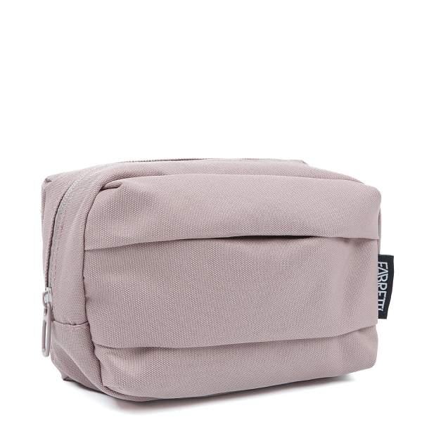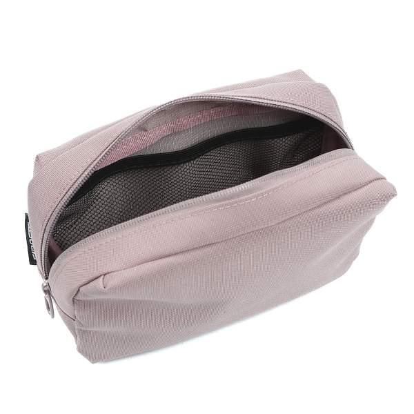 Компактная косметичка FABRETTI в приглушённом розовом оттенке выполнена из высококачественного влагостойкого полиэстера. Основное отделение закрывается на полукруглую молнию. Внутри карман-сетка на фиксирующей резинке для мелочей. На лицевой стороне расположен карман на молнии.