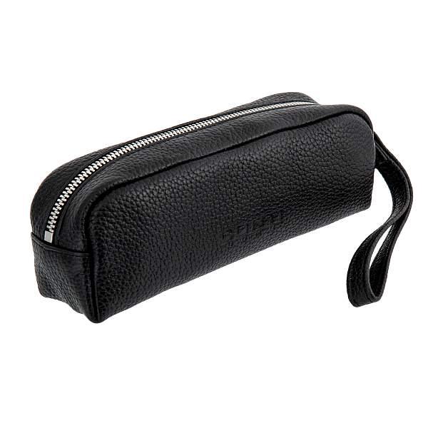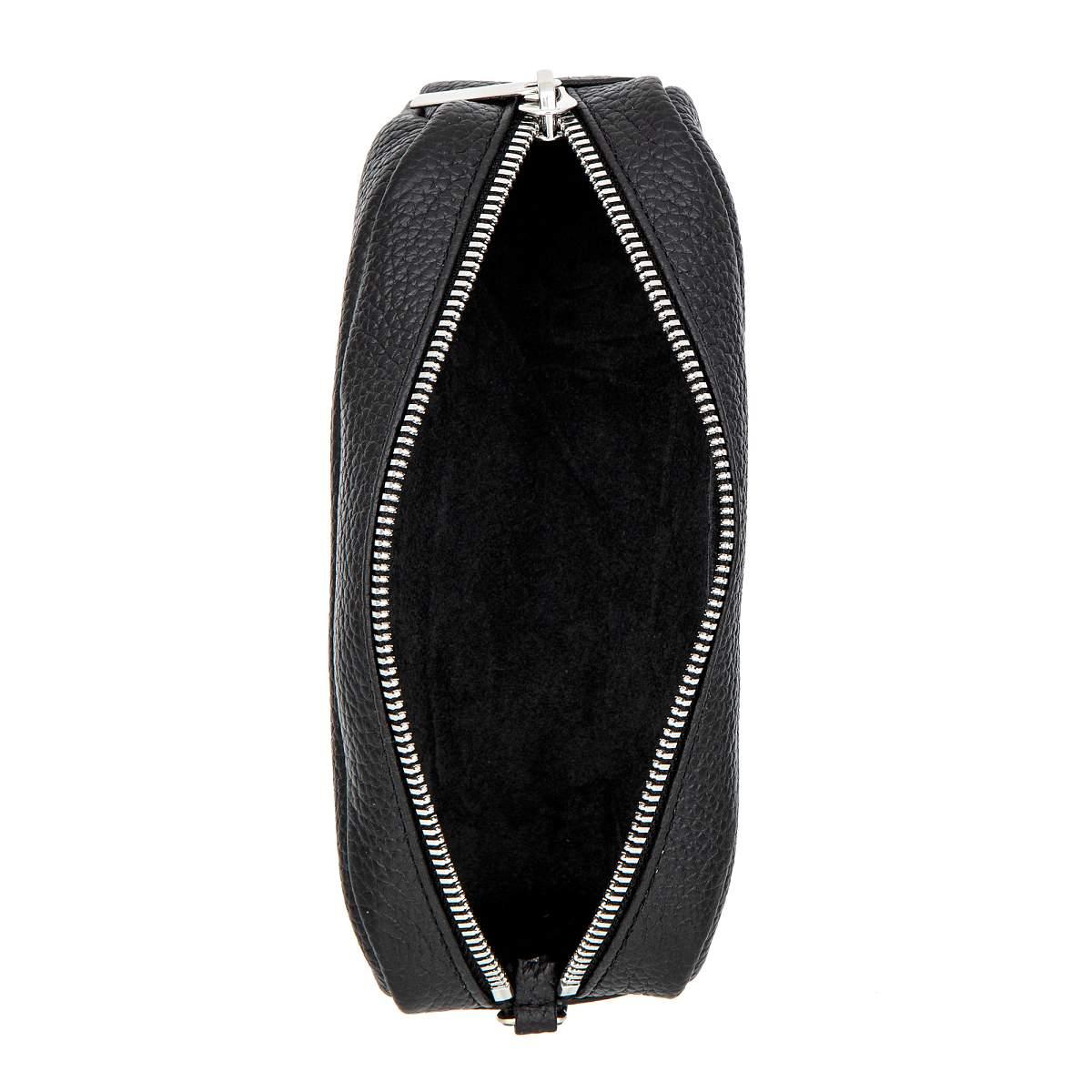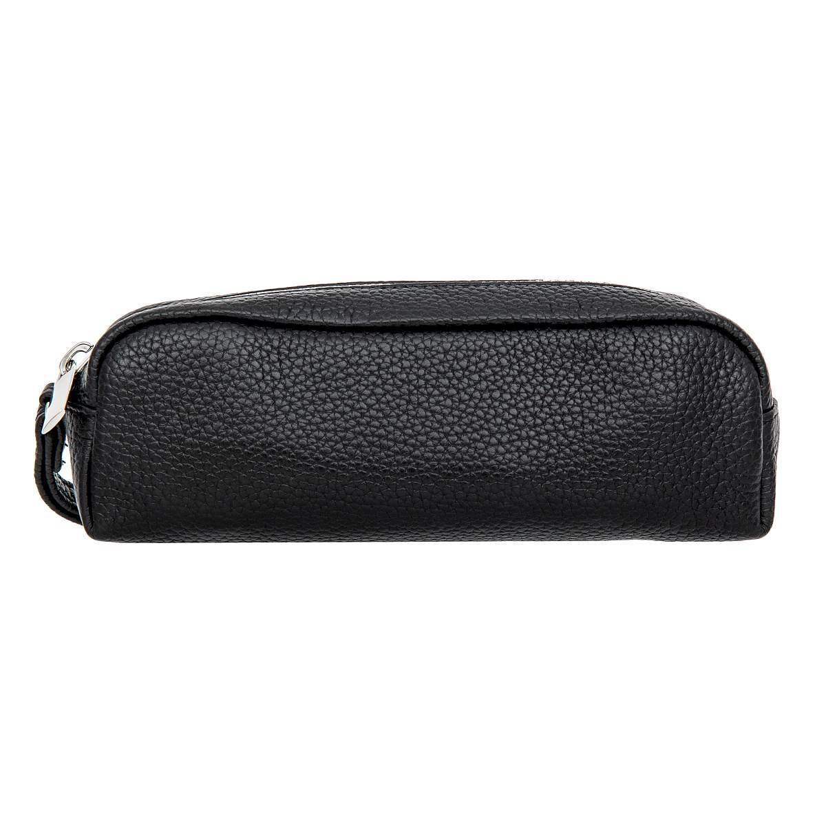 Женская косметичка из натуральной кожи черного цвета с изысканной зернистой фактурой.