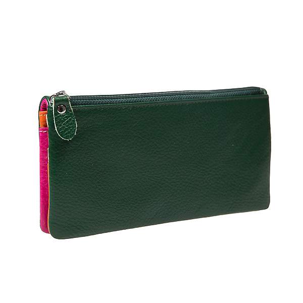 Кошелек из натуральной кожи с интересным внутренним наполнением: двенадцать отделений для визитных карт, два - для купюр и два кармана на молнии (внутри и с внешней стороны для монет). Благодаря ярким сочетаниям цветов кошелек всегда сможет поднять вам настроение даже в самый пасмурный день.