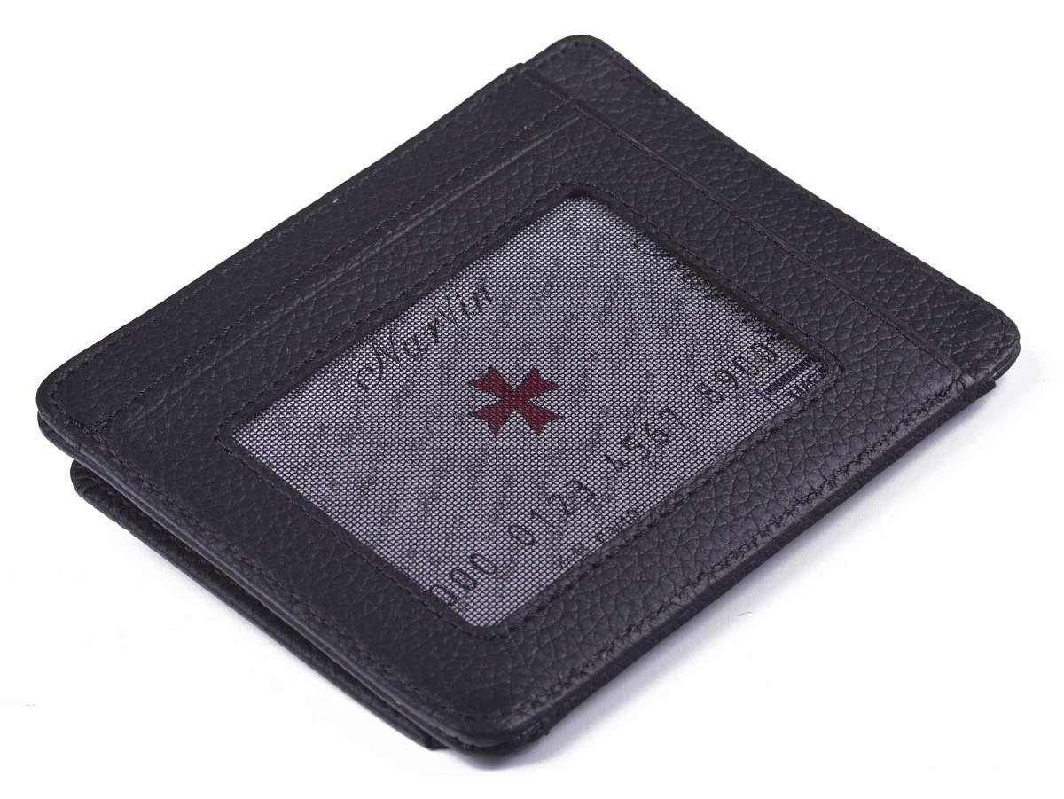 Швейцарская бренд NARVIN представляет многофункциональную кредитницу из натуральной кожи — идеальное решение для хранения банковских карт, денег и визиток. Этот стильный аксессуар обладает высокой прочностью, влагостойкостью и прост в уходе. Он станет прекрасным дополнением к различным мужским и женским аксессуарам, таким как портмоне, сумки, барсетки, клатчи и поясные сумки. Лёгкий и компактный картхолдер вмещает документы, например водительские права, банкноты и карты. Визитница закрывается на кнопку и имеет отделения для кредитных карт, документов и бумаг. Внутри предусмотрено 5 ячеек для кредитных карт и 1 отделение для бумаг.