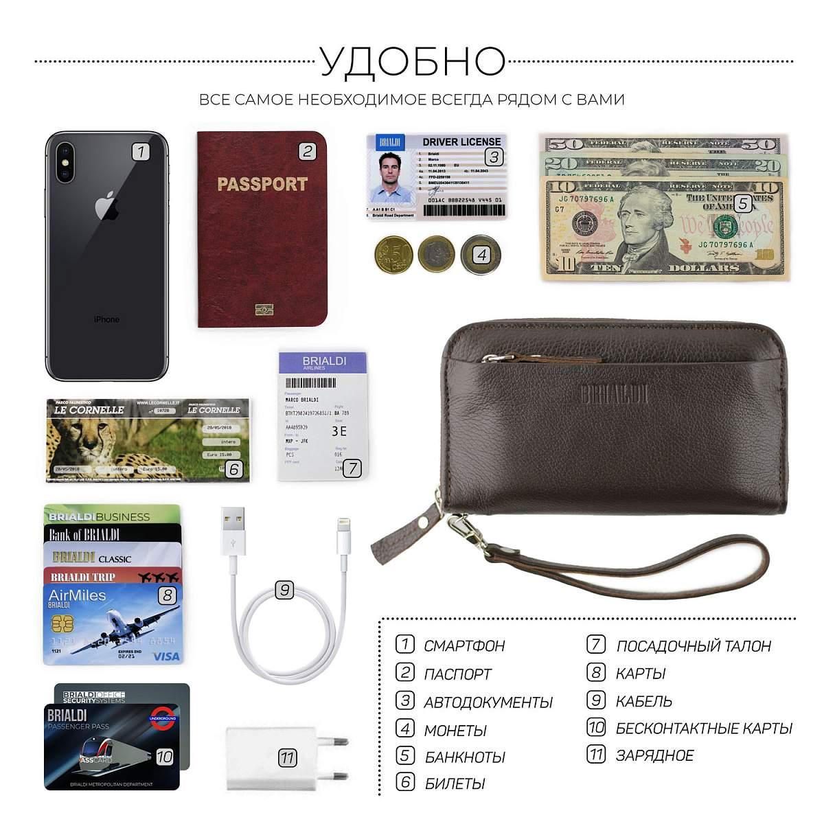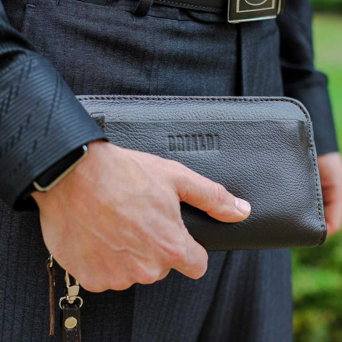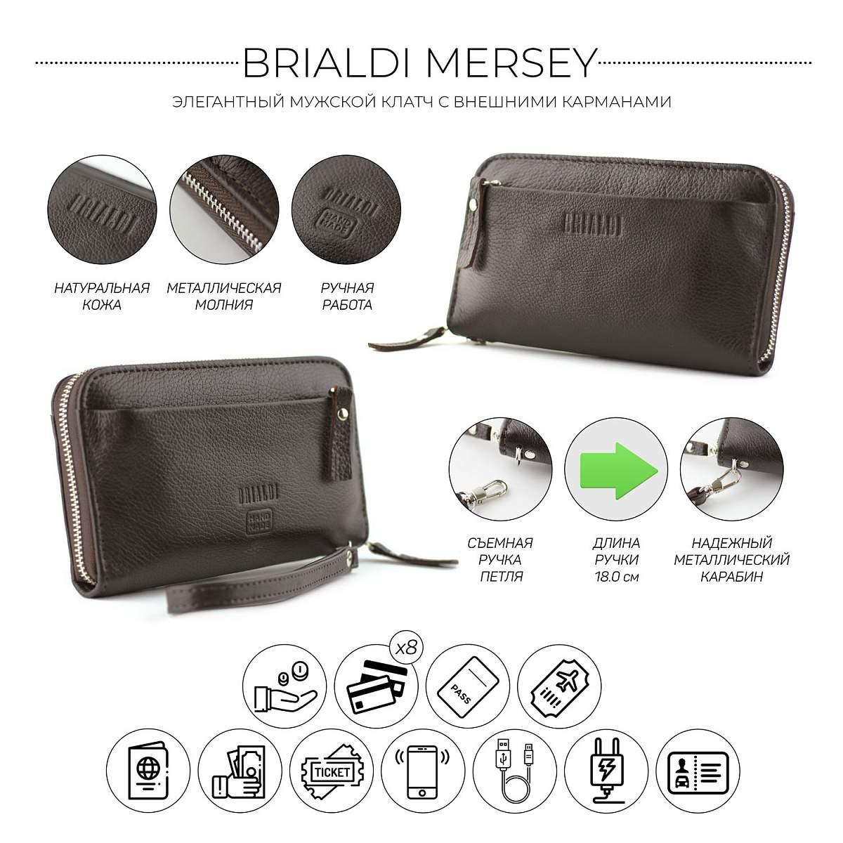 Мужской клатч BRIALDI Mersey (Мерси) relief brown BR28614LV Коричневый