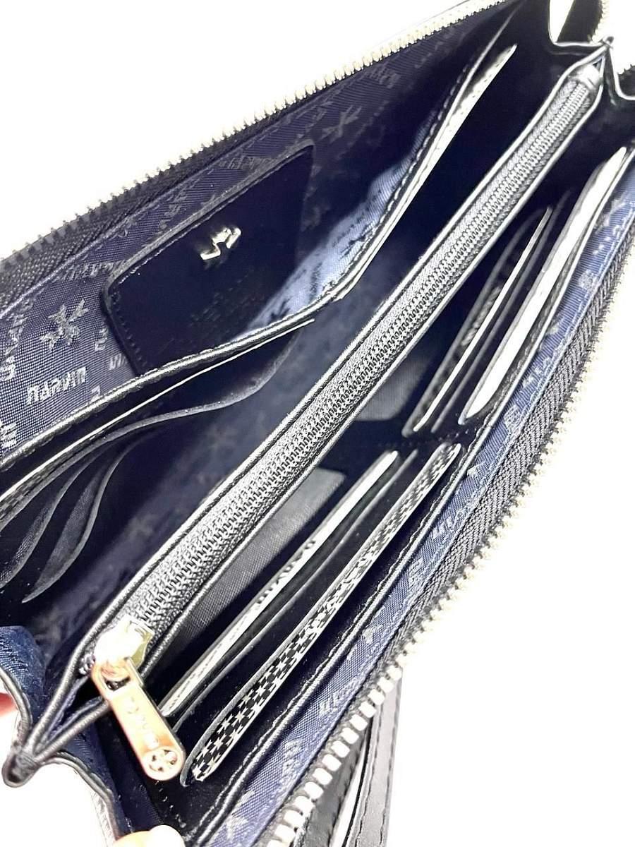 Внутри 2 основных отделения, одно дополнительное отделение на молнии, 10 кармашков для кредитных карт, 2 кармашка с сеточкой.