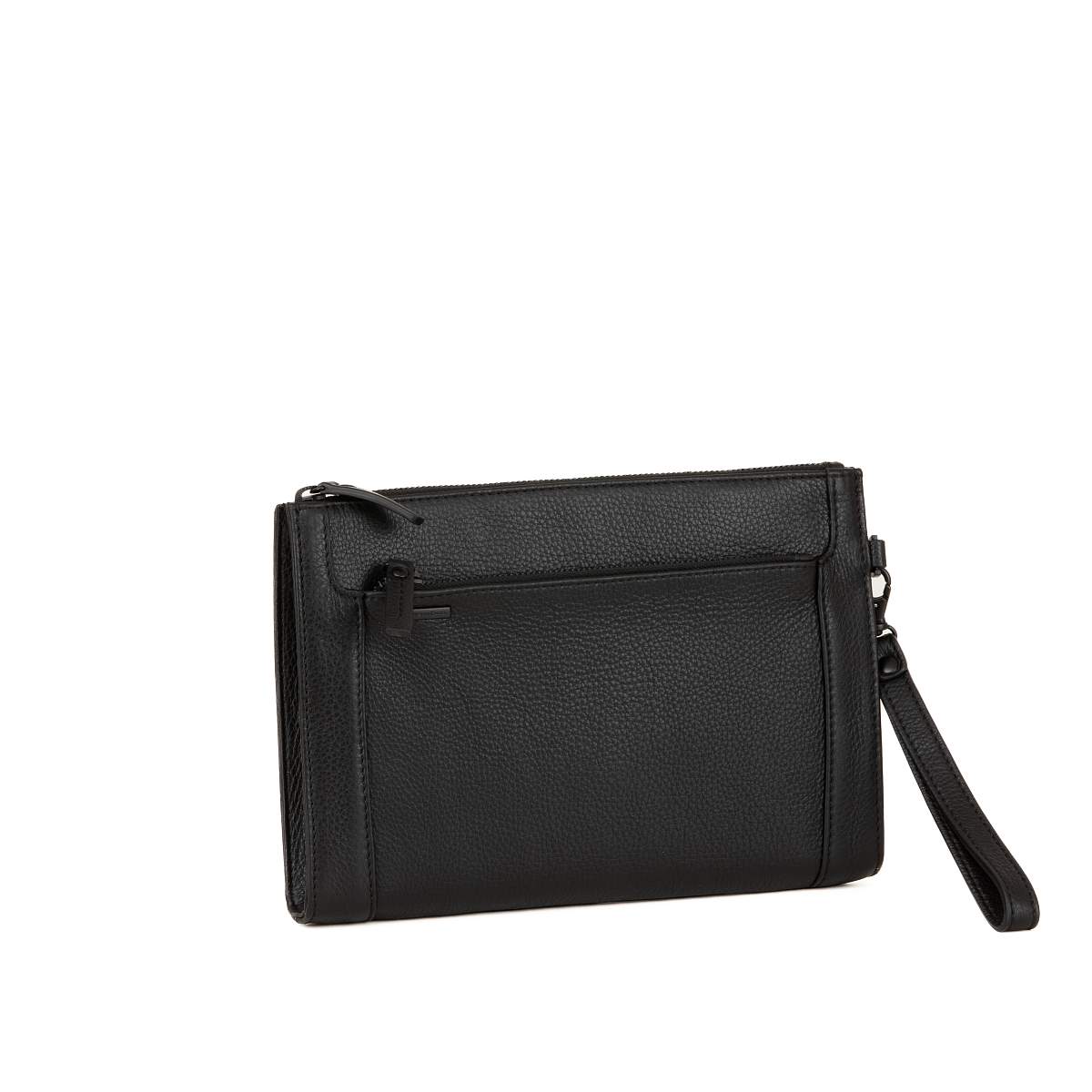 Чёрный мужской клатч из натуральной кожи Gianni Conti. Закрывается на молнию. Внутри расположено одно просторное отделение, которое идеально подходит для хранения документов или даже планшета. Так же имеется три кармашка для мелких предметов.