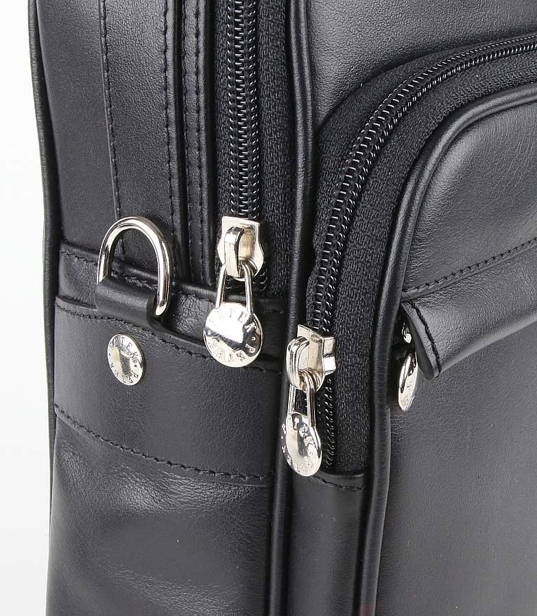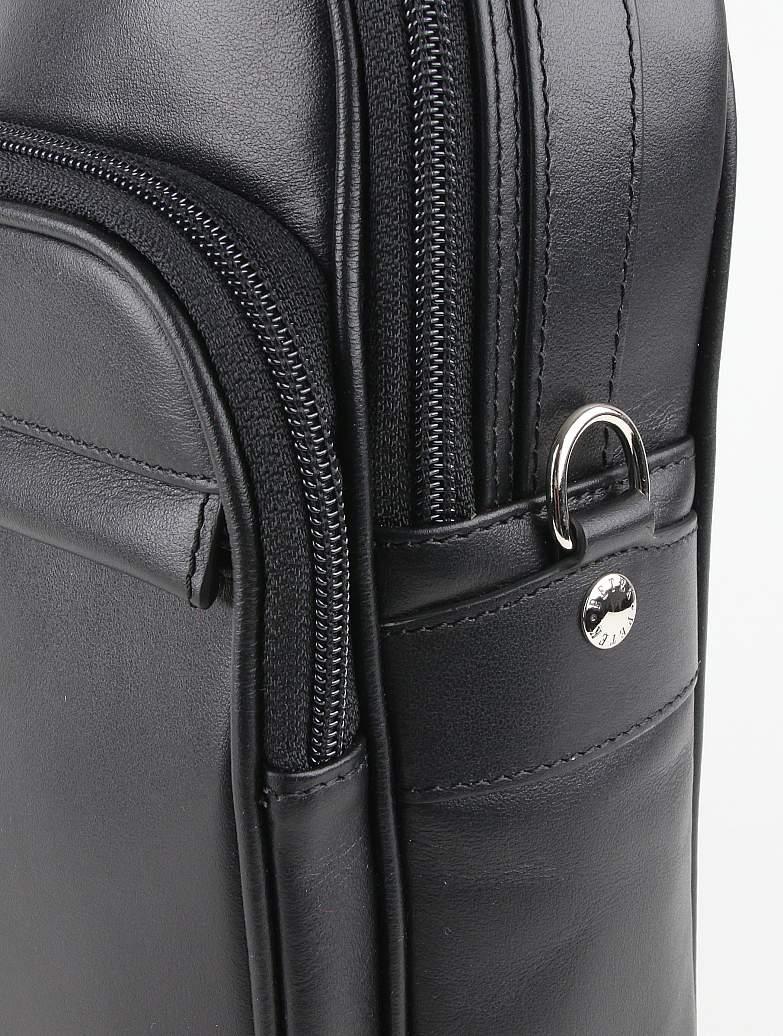 Мужская дорожная сумка Petek на плечевом ремне из натуральной кожи черного цвета с зернистой фактурой. Внутри: Один основной и три дополнительных кармана на молнии. В комплекте плечевой ремень.