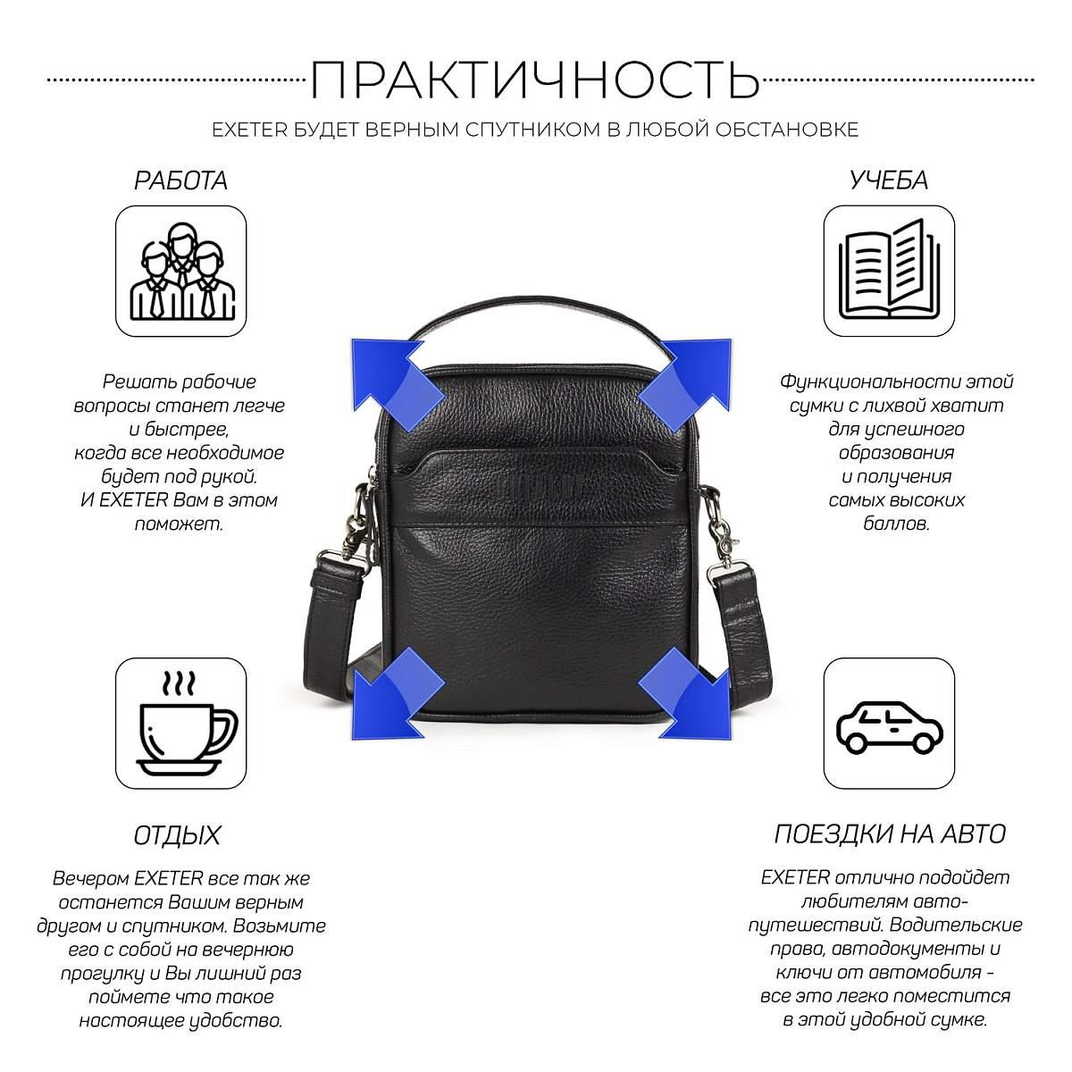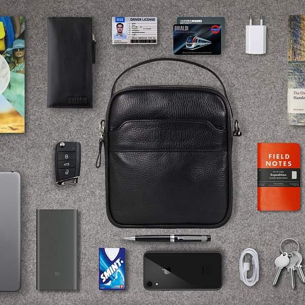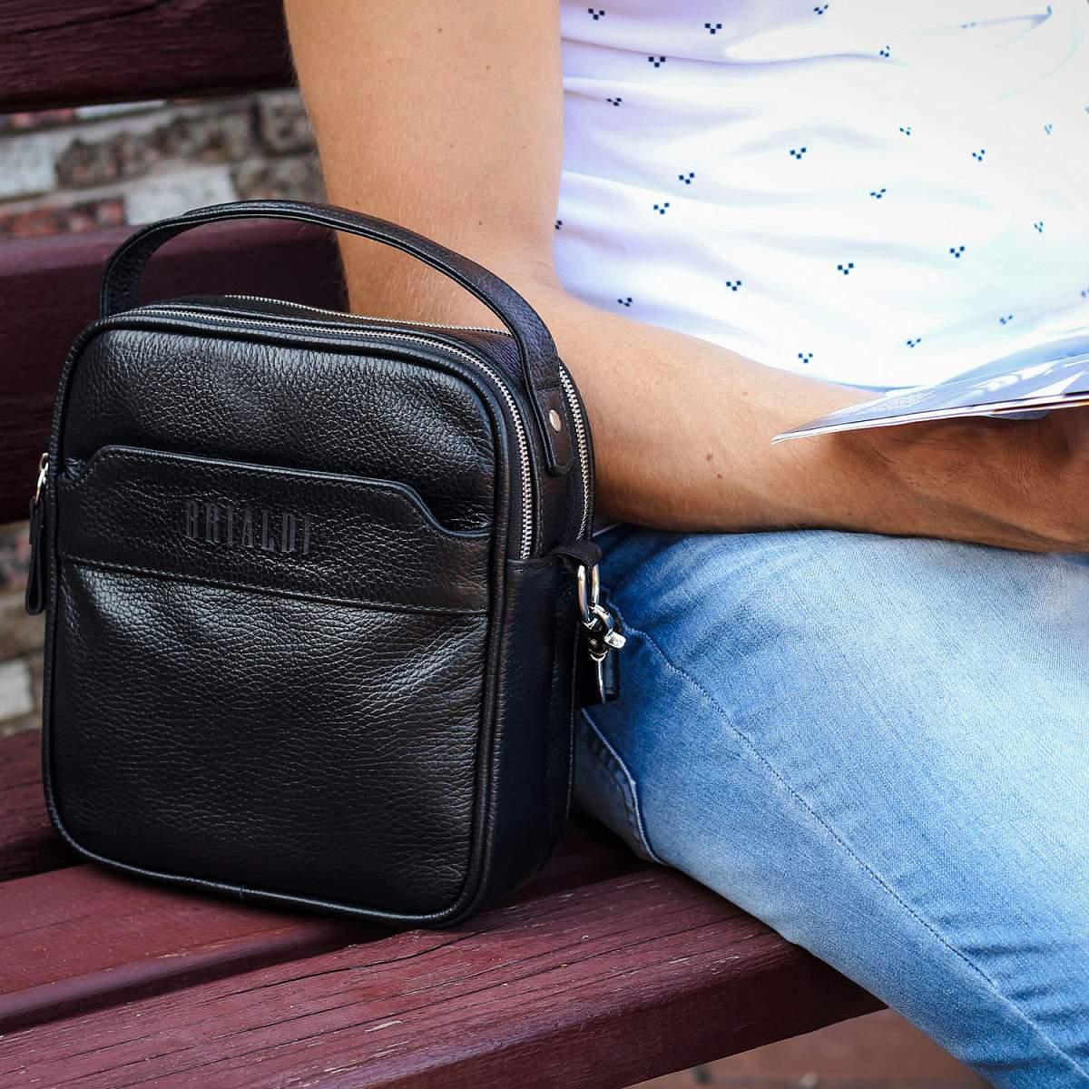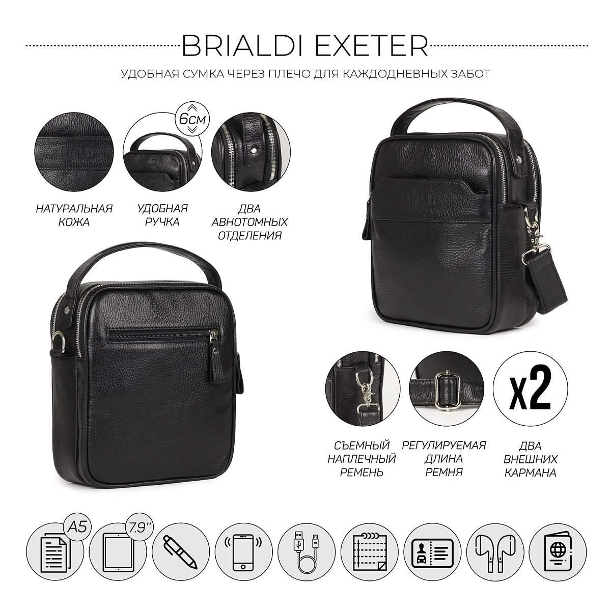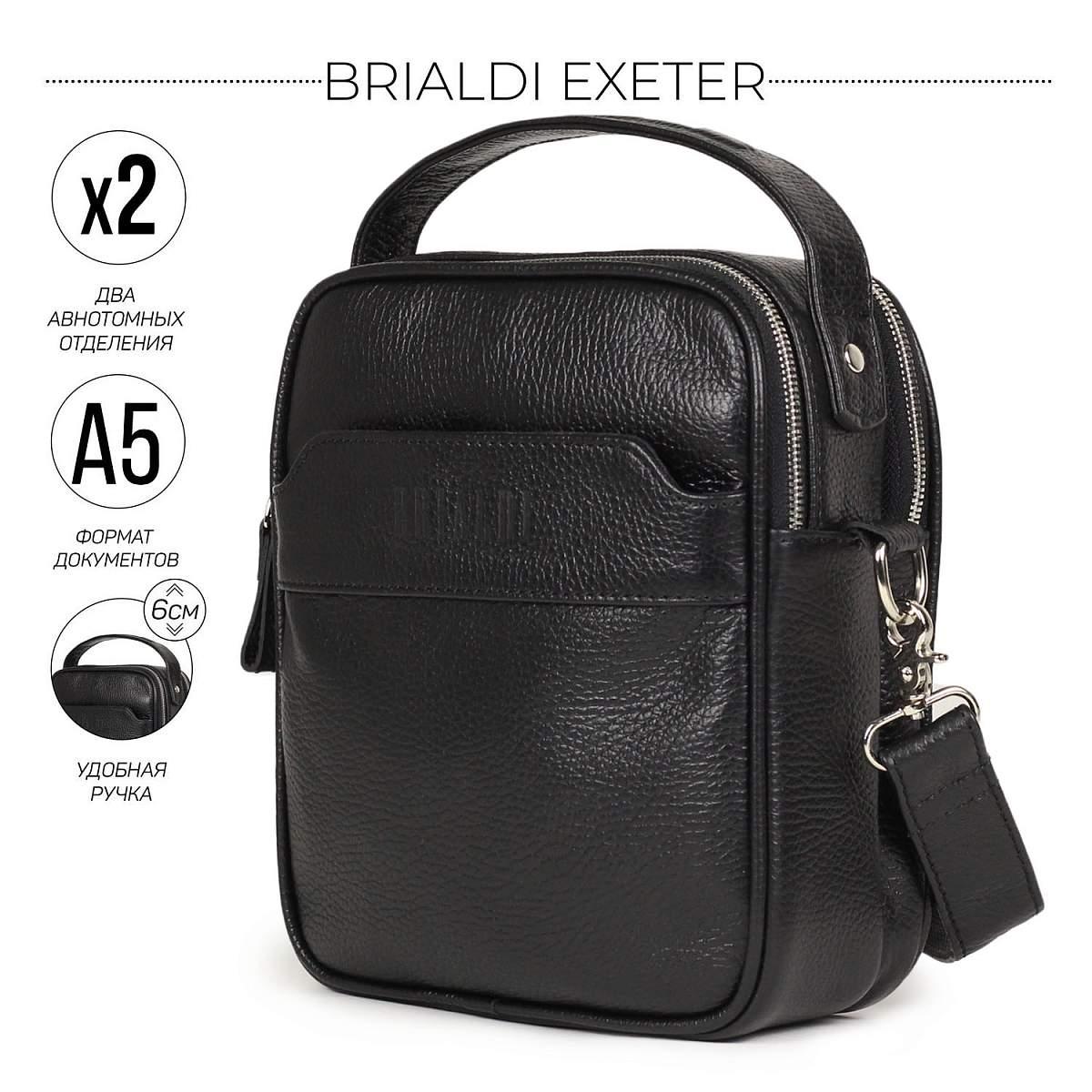 Кожаная сумка через плечо BRIALDI Exeter (Эксетер) relief black BR34399HX Черный