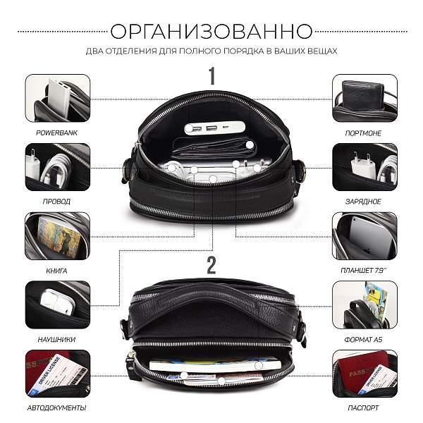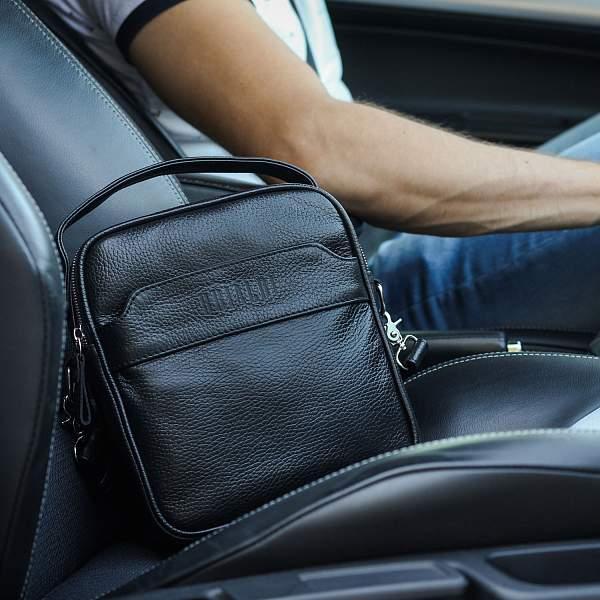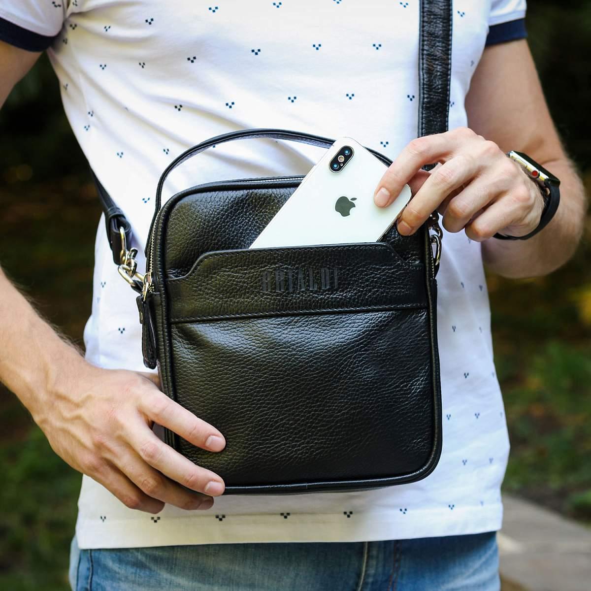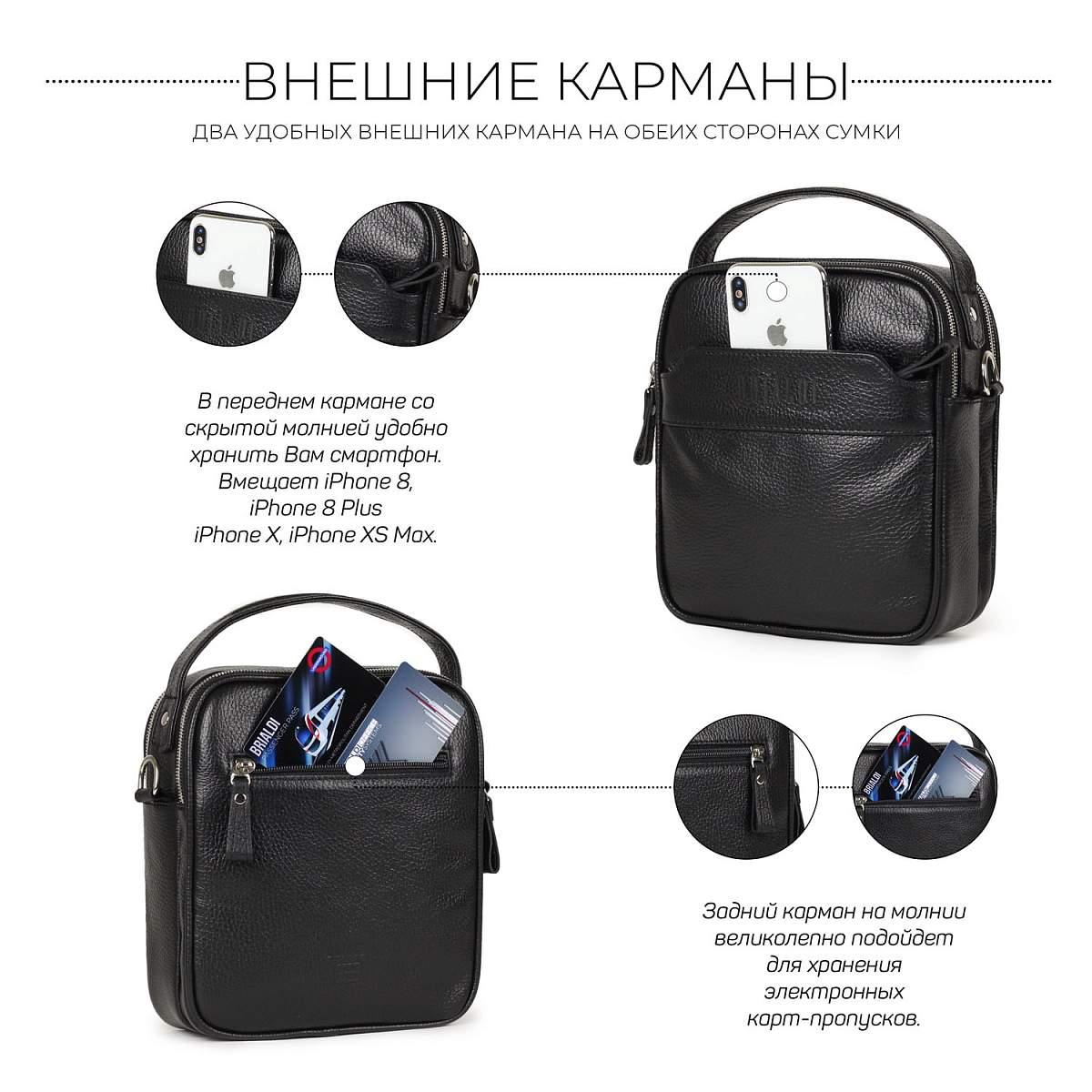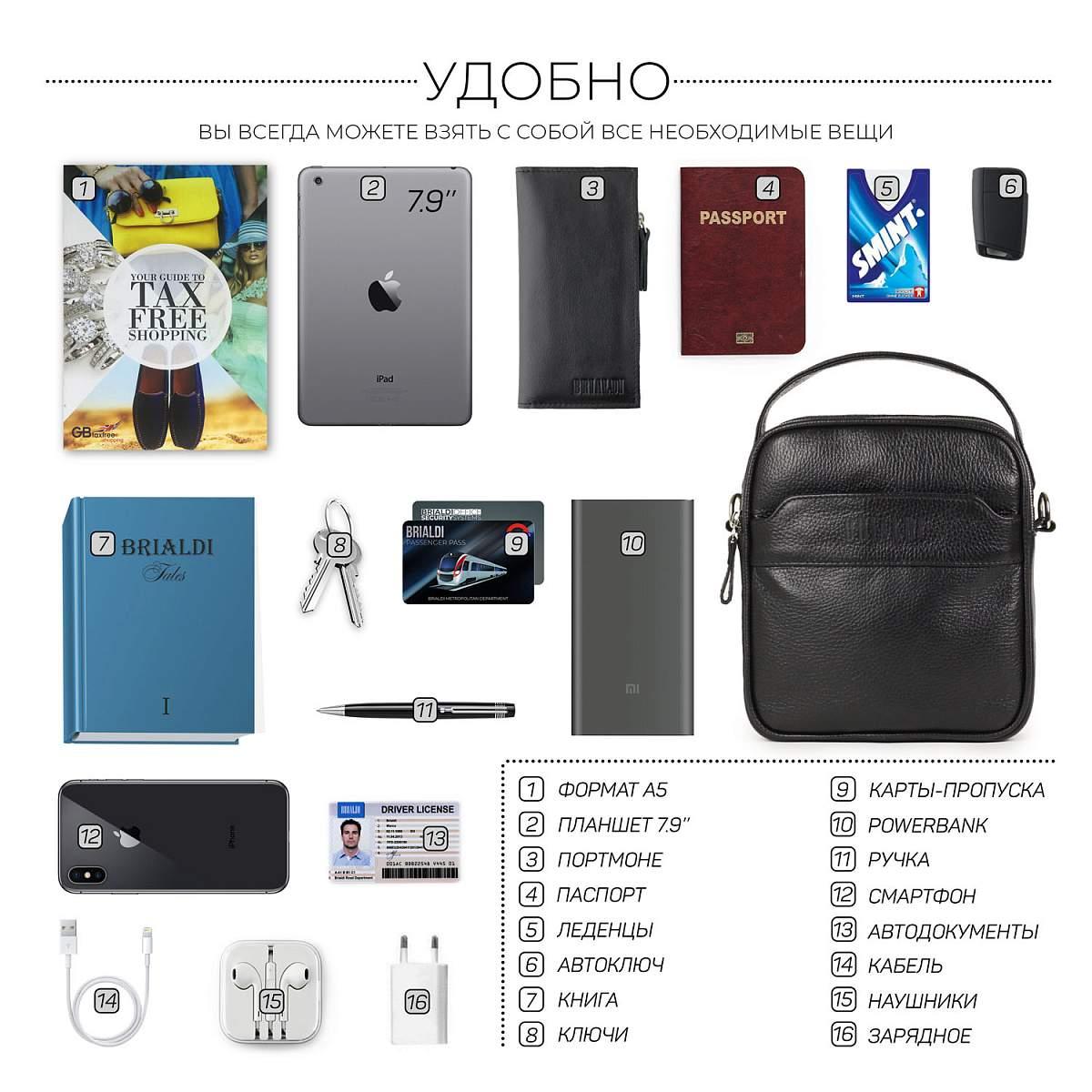 Кожаная сумка через плечо BRIALDI Exeter (Эксетер) relief black BR34399HX Черный