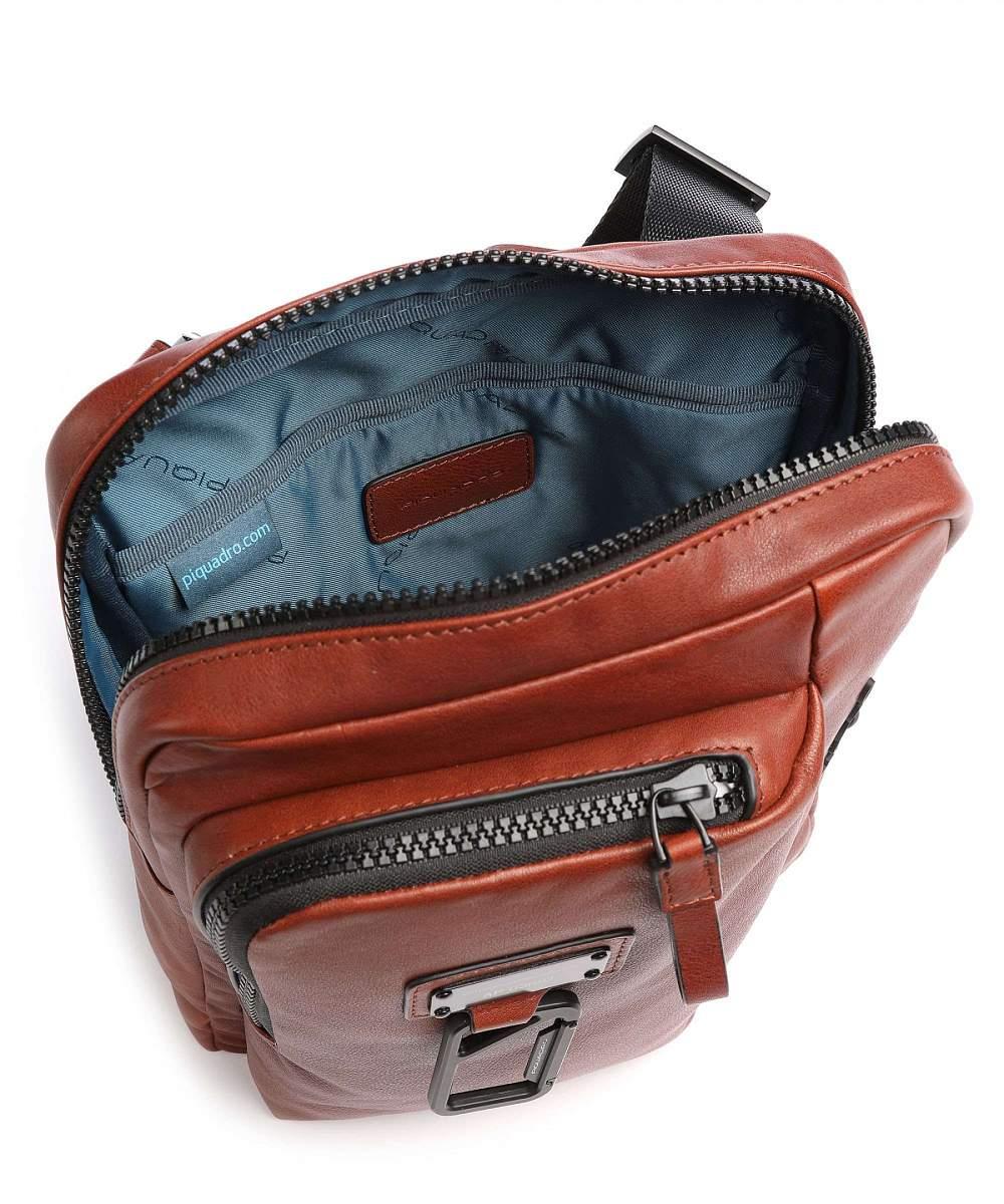 Сумка через плечо Piquadro кожаная табачная