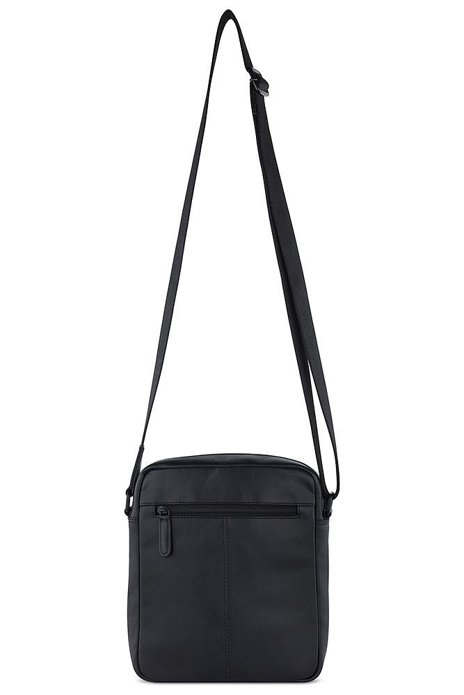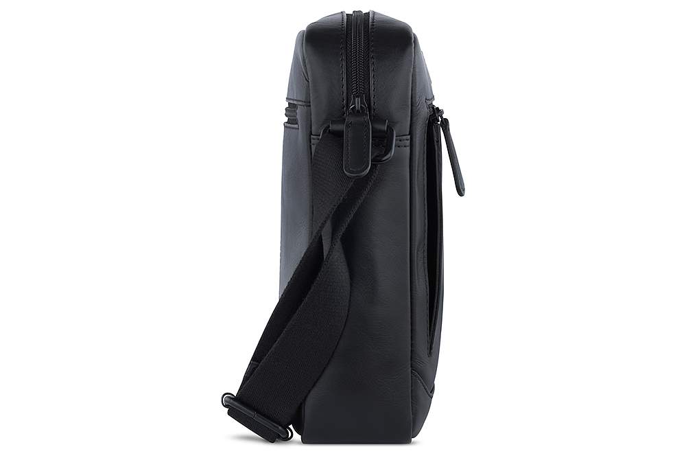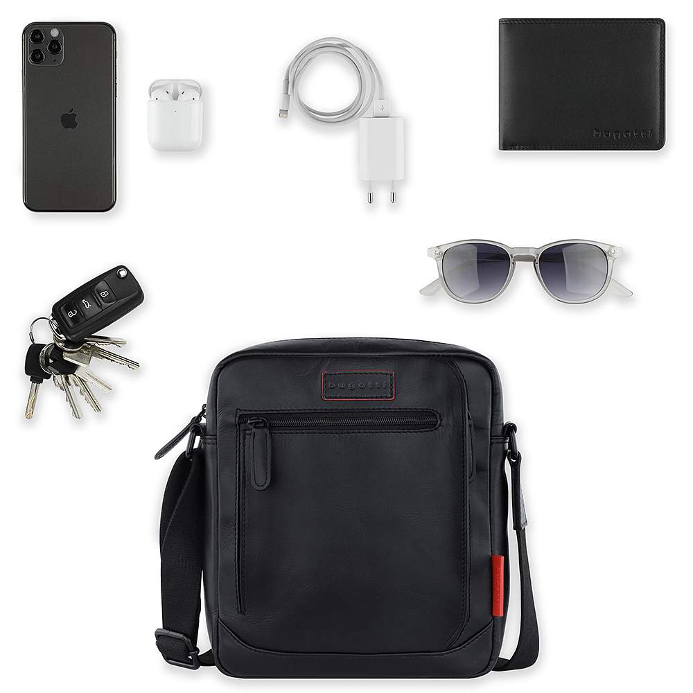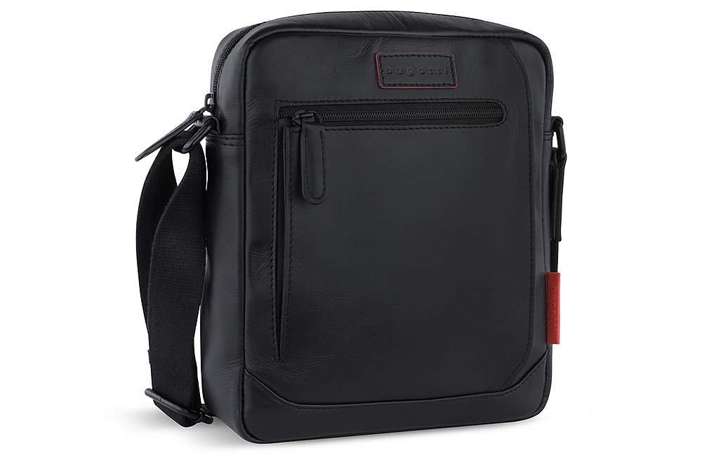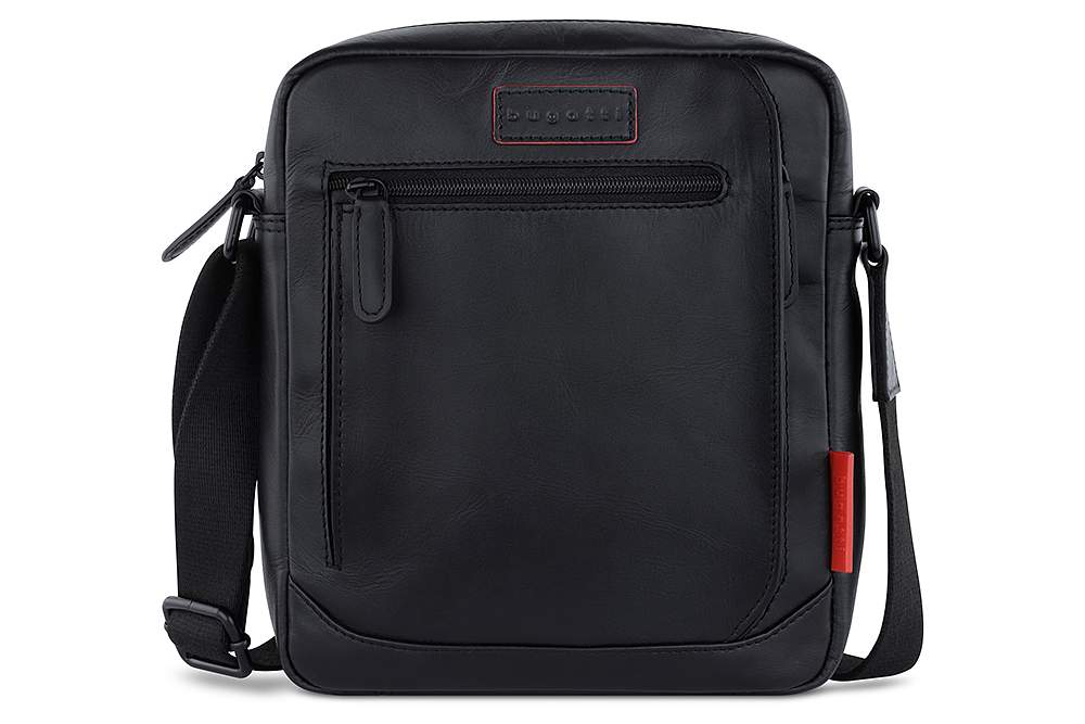 Сумка наплечная мужская BUGATTI Clark, чёрная, воловья кожа/полиэстер, 21х6,5х24 см, 3 л