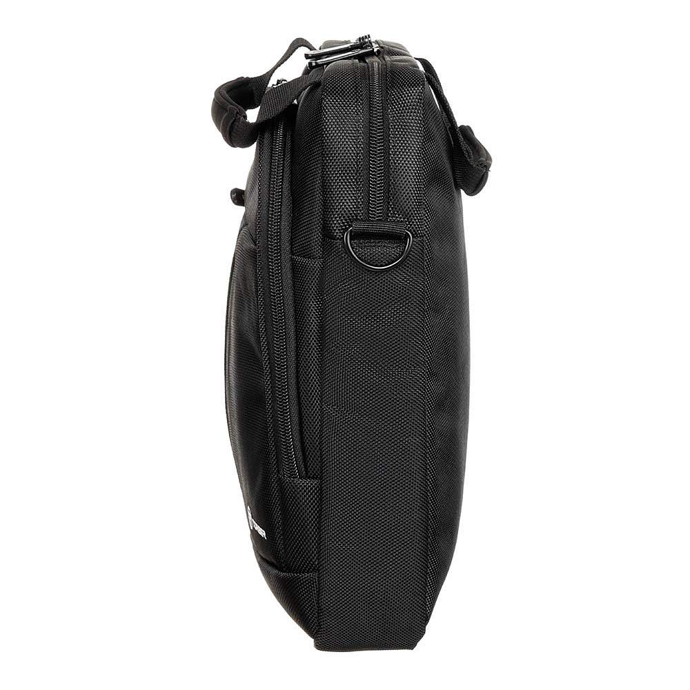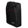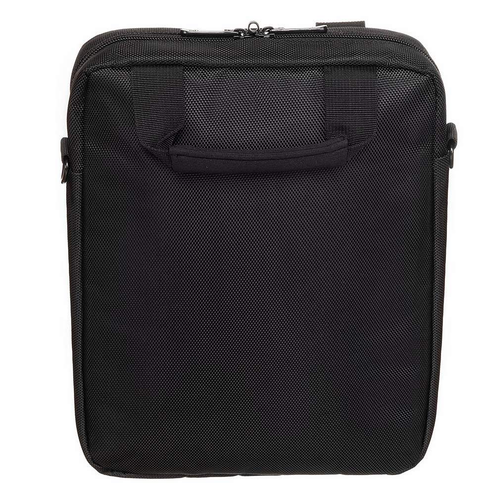 Сумка выполнена в чёрном цвете с красным акцентом, оснащена двумя внешними карманами на молнии, а также регулируемым наплечным ремнем, который позволяет подобрать оптимальную высоту для носки в соответствии с индивидуальными предпочтениями. Для удобной транспортировки предусмотрена эргономичная ручка. В основном отделении имеется мягкий карман для планшета и сетчатый карман на молнии.