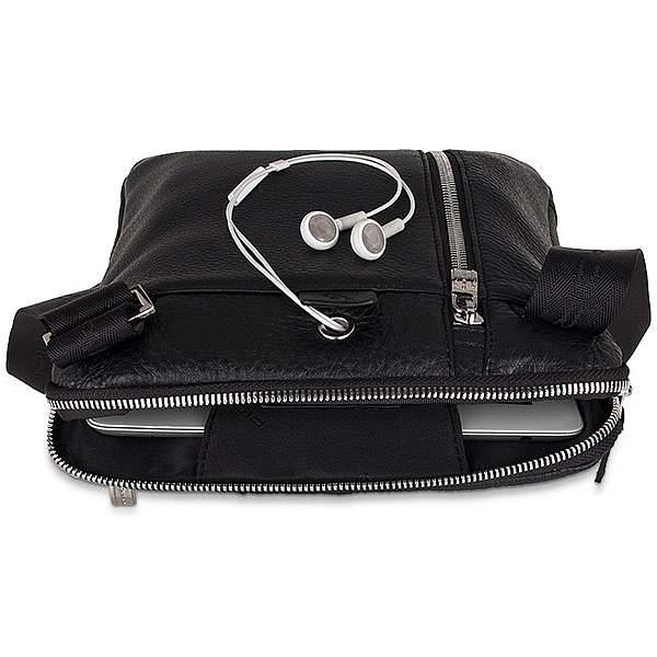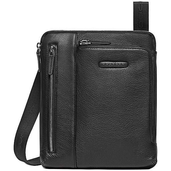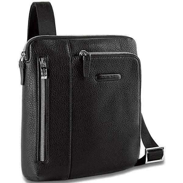 Сумка для iPad/iPad Air, с двойным передним карманом, карманом для проигрывателя МР3 и креплением для наушников от компании Piquadro, коллекция Modus. Натуральная телячья кожа черного цвета.