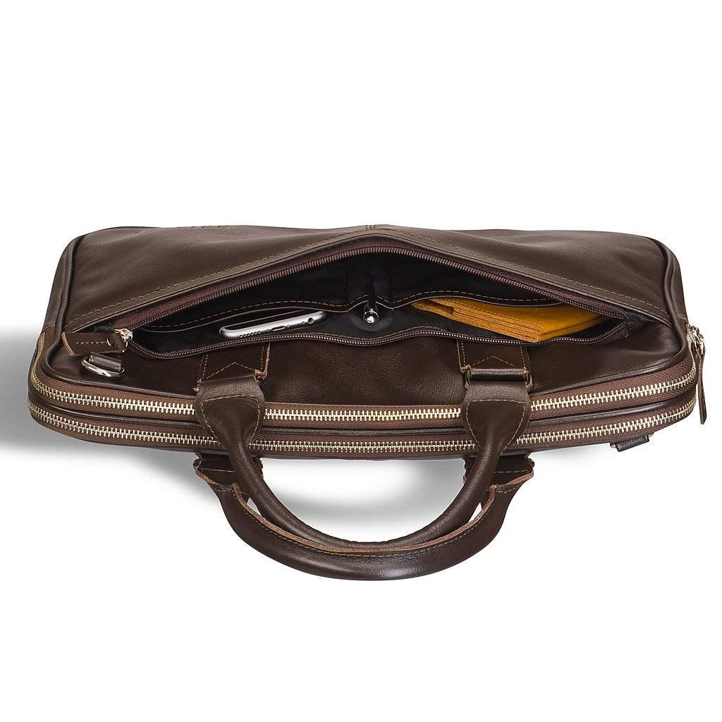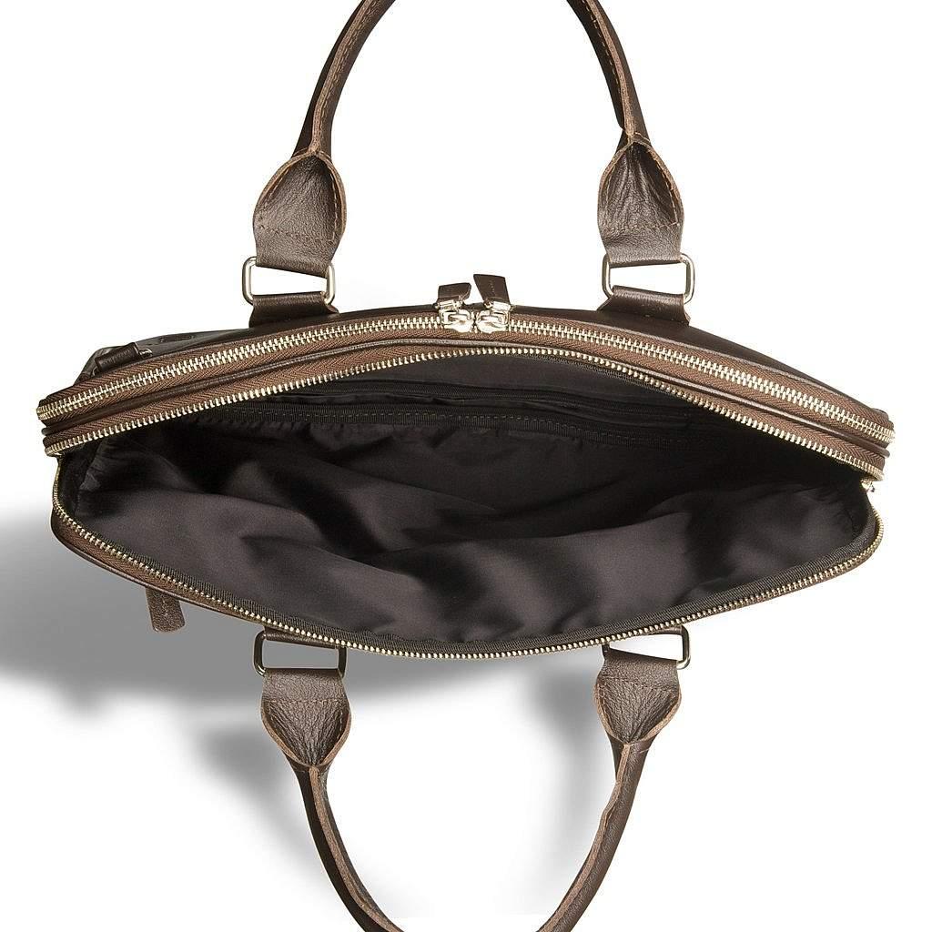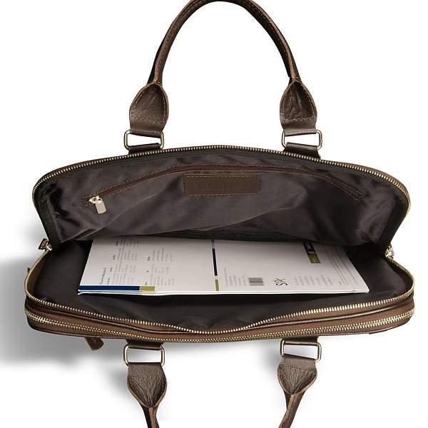 Продуманно сконструированная деловая модель. Подчеркнуто и эффектно предназначенная для бумаг и документации, стильная и удобная альтернатива портфелю. Очень удобная для длительного и комфортного перемещения по городу. Молния двух основных отделений обеспечивает широкий угол доступа к содержимому. Одно отделение специально создано для ноутбука и не имеет дополнительных карманов, чтобы не поцарапать поверхность вашего любимца. Внутри переднего кармана присутствуют слоты для телефона, документов и прочих приятных мелочей. Крепления съемного плечевого ремня расположены диагонально.