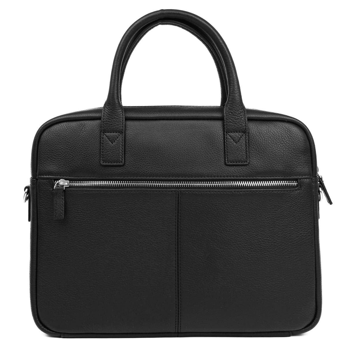На лицевой стороне расположен вместительный открытый карман и карман на молнии. На тыльной стороне предусмотрен карман быстрого доступа на молнии. Вместительное отделение закрывается на полукруглую молнию с кожаным поводком. Внутри есть карман на молнии для мелочей, а также секция с мягкой стенкой для гаджетов. Сумка вмещает формат А4. Цвет фурнитуры - серебро.