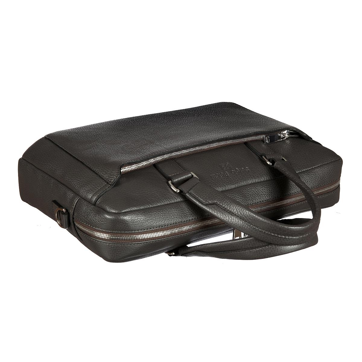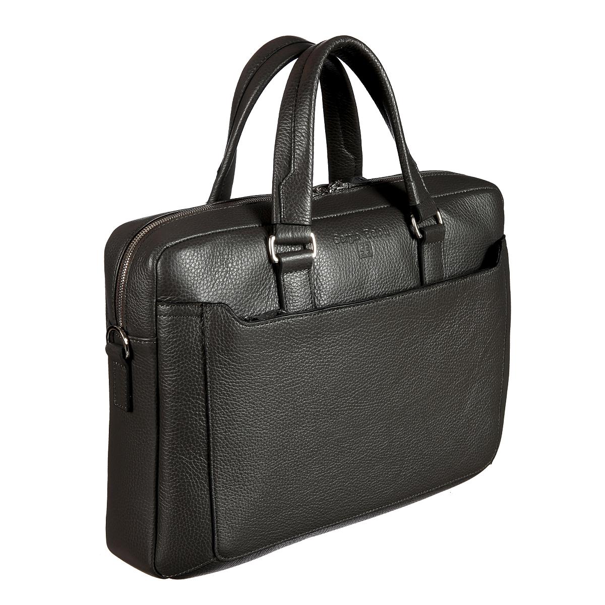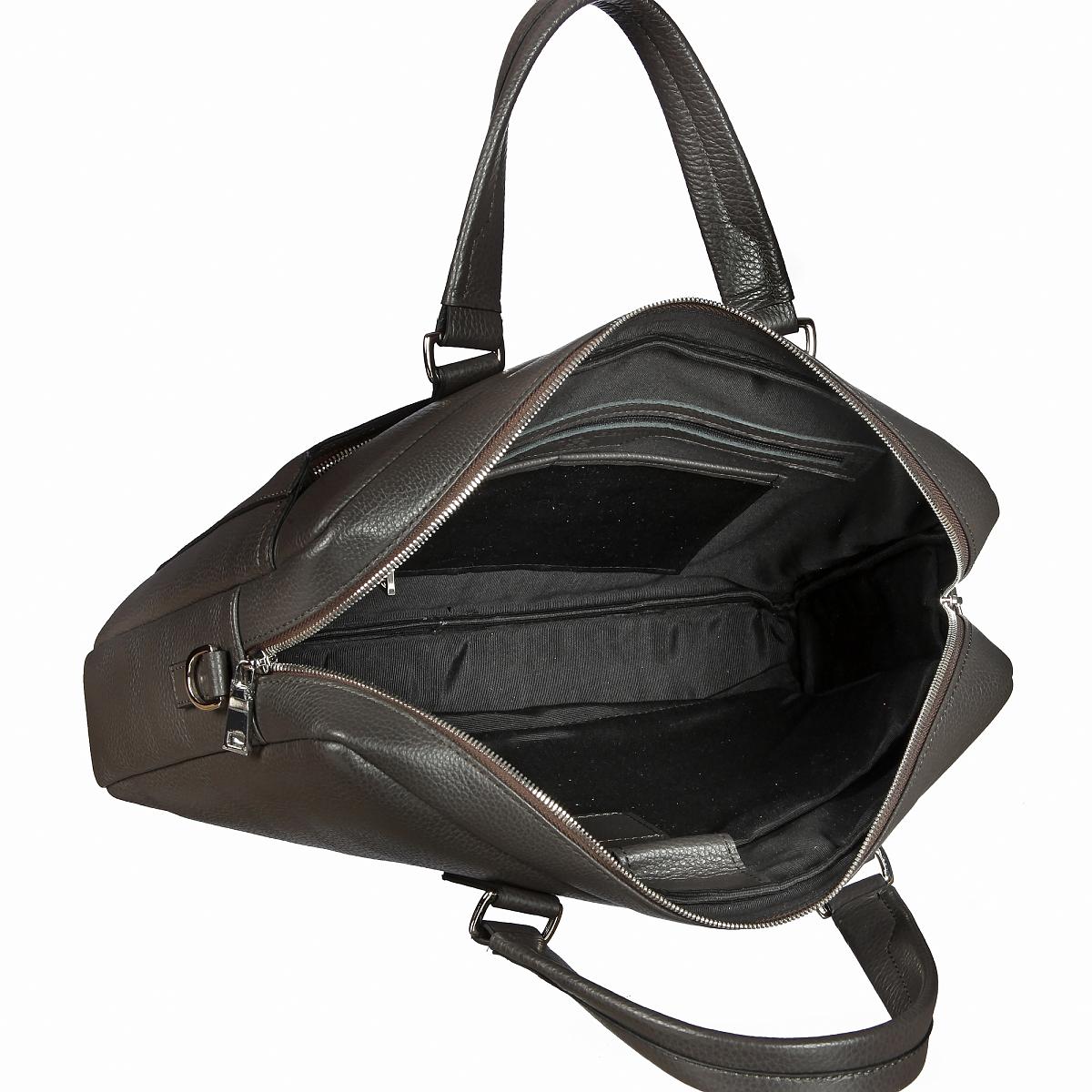 Стильная бизнес-сумка из мягкой натуральной кожи зернистой фактуры. Закрывается на двухстороннюю молнию. Внутри просторное отделение с карманом для планшета на липучке. Там же 2 кармашка для мелких предметов и карман на молнии. Снаружи на лицевой стенке карман на молнии. Сумка оснащена съёмным регулируемым плечевым ремнём на карабинах.