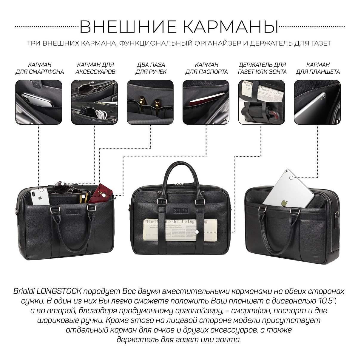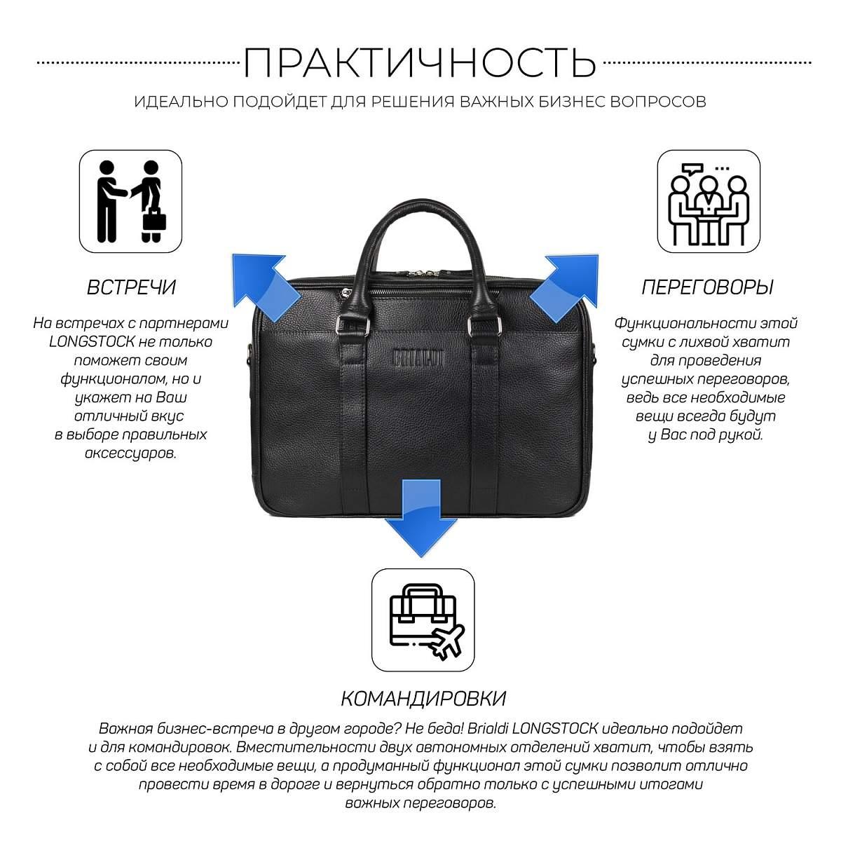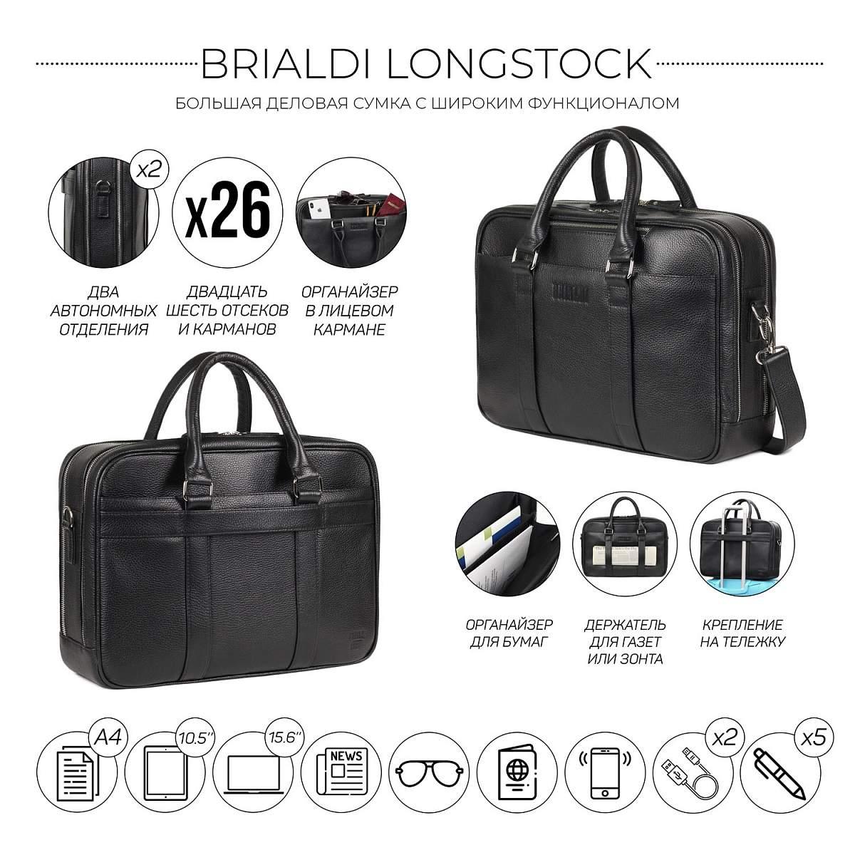 Вместительная деловая сумка с 2 отделениями BRIALDI Longstock (Лонгсток) relief black