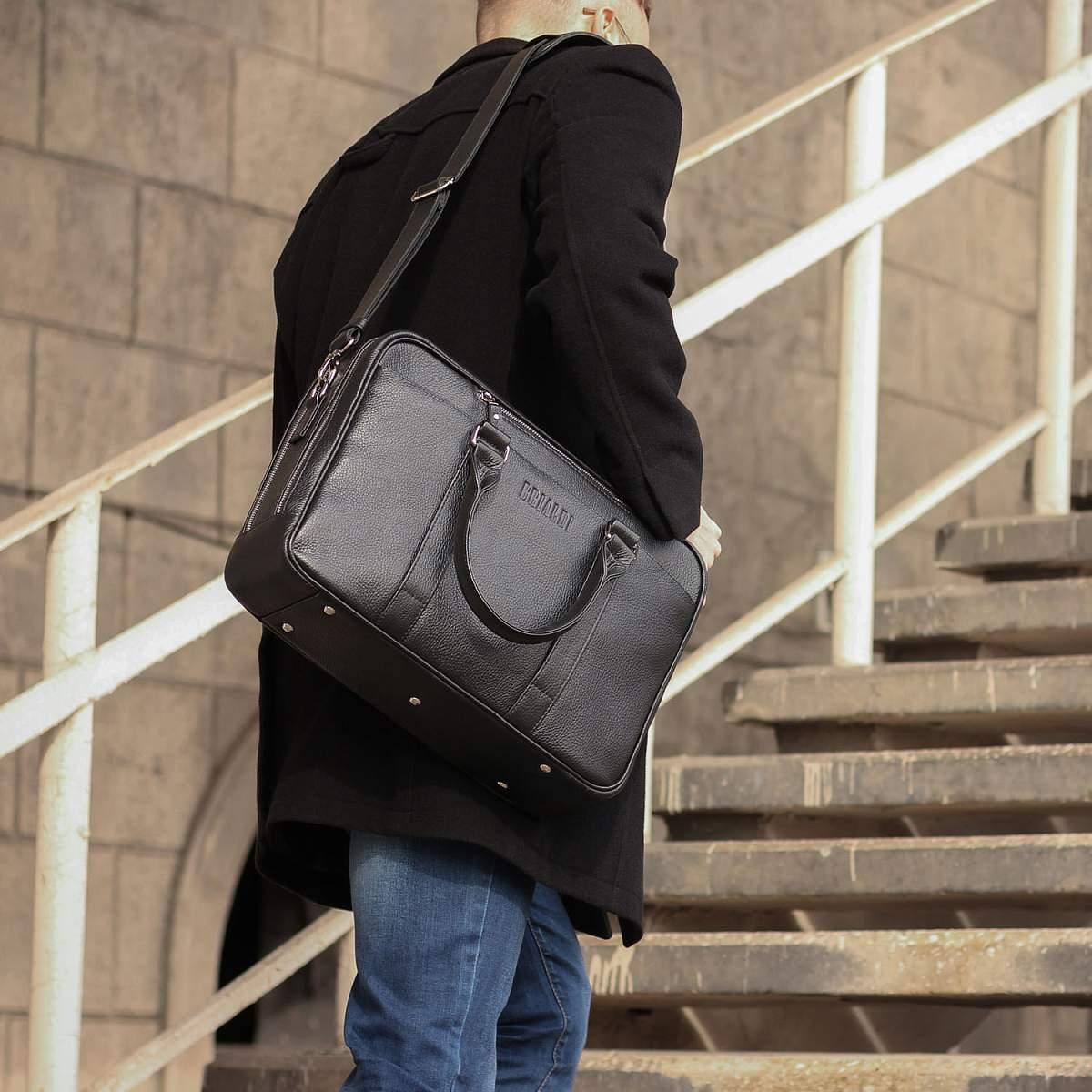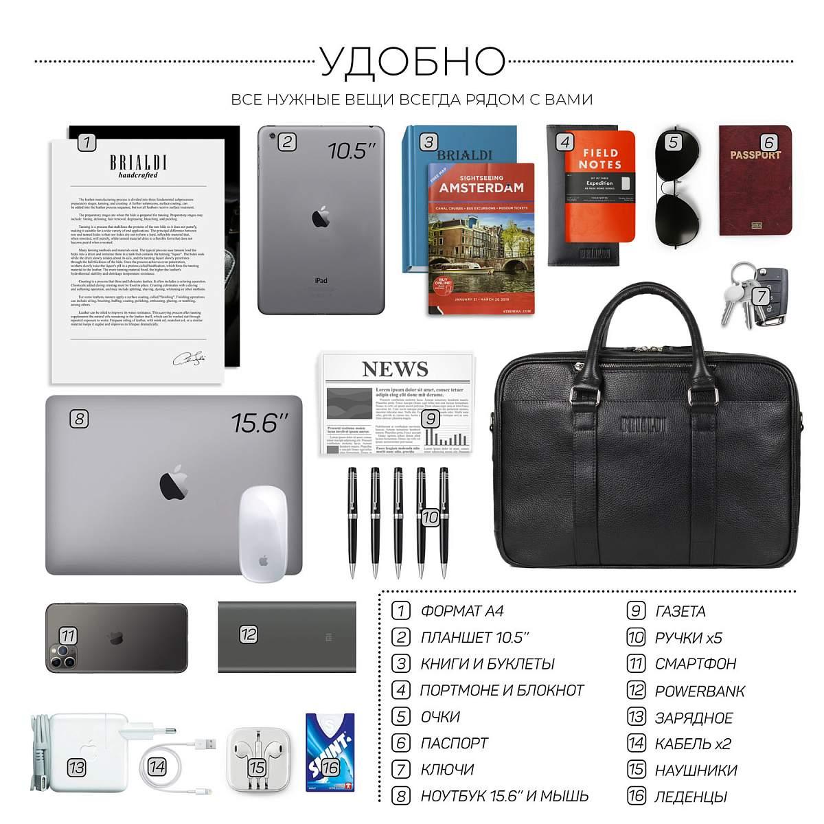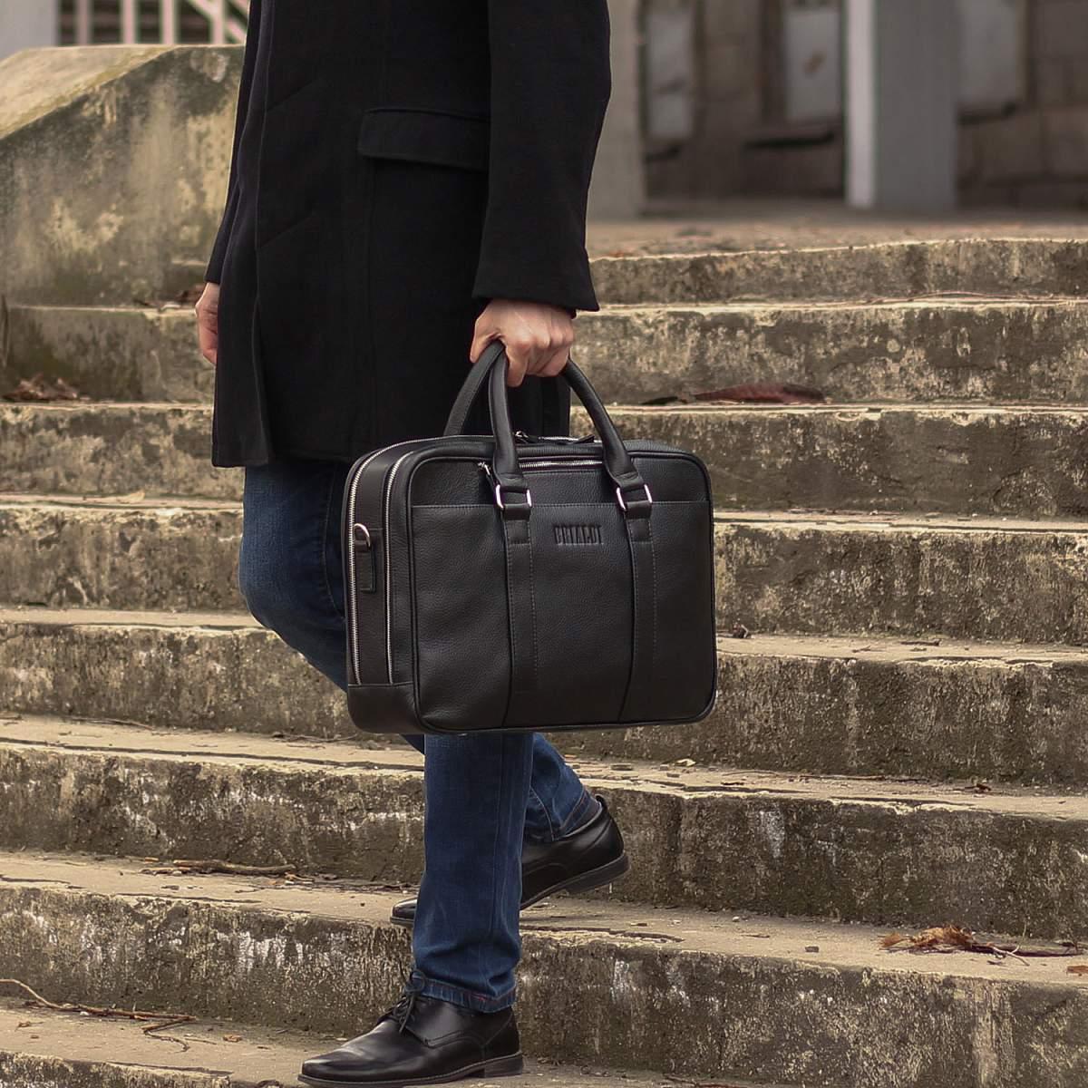 Вместительная деловая сумка с 2 отделениями BRIALDI Longstock (Лонгсток) relief black