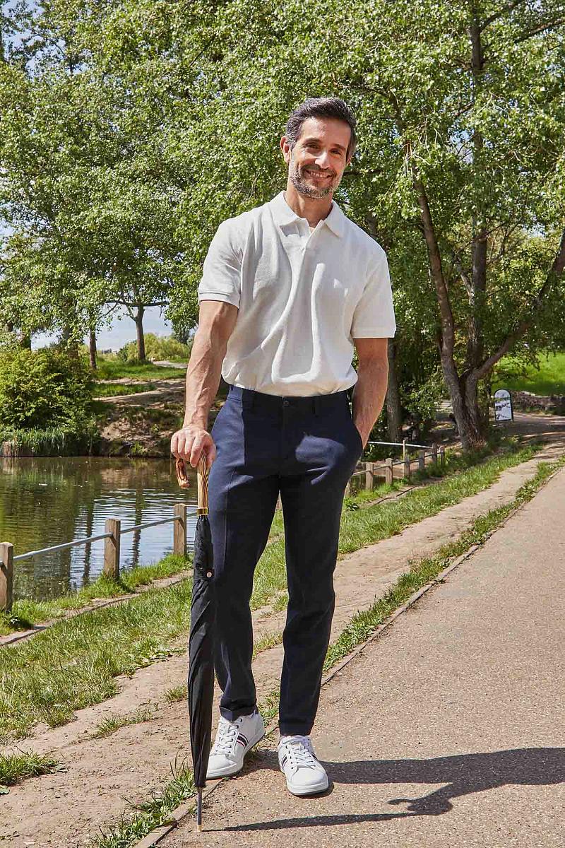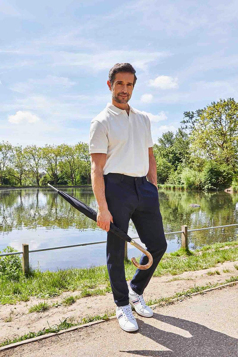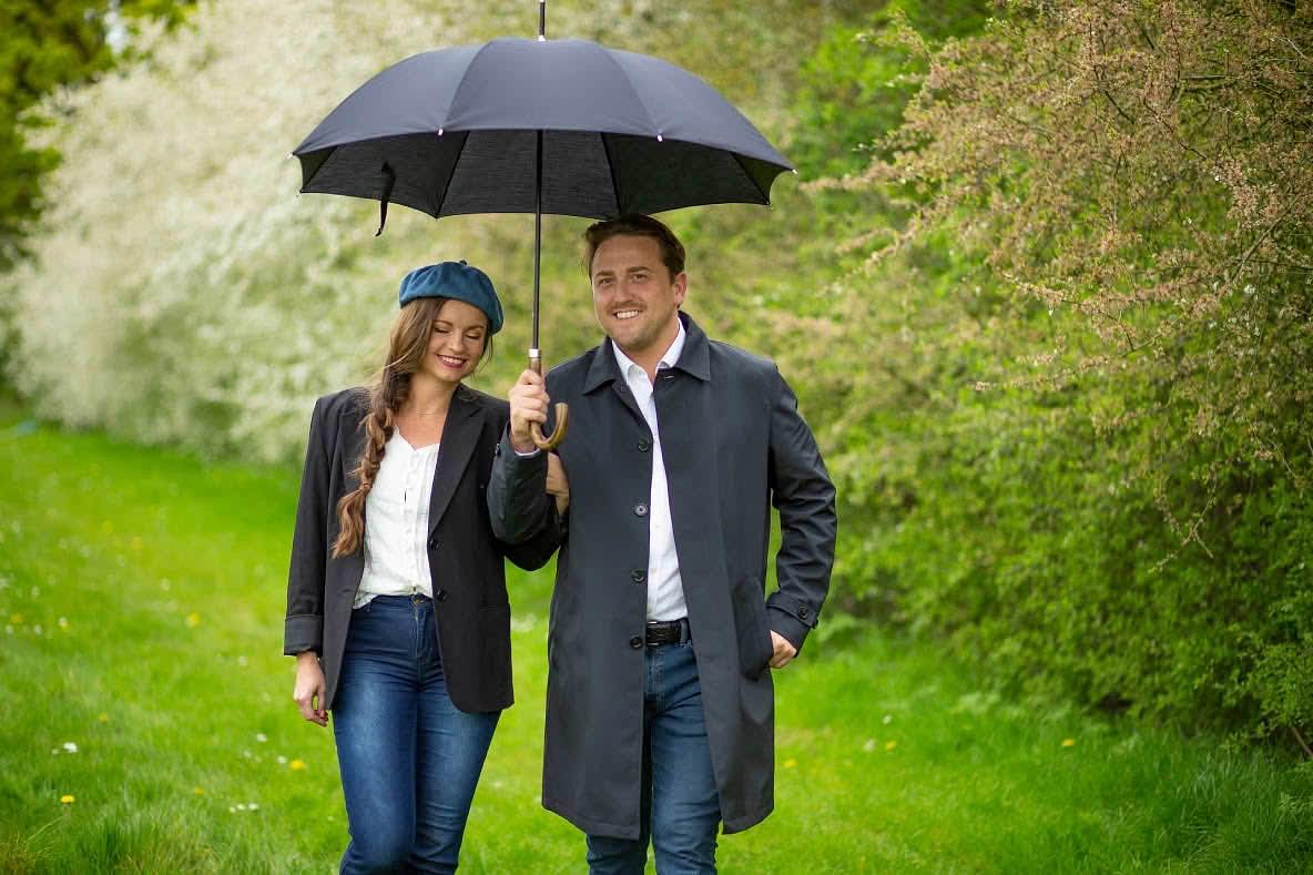 Интересная и редкая прогулочная модель, которую по достоинству оценит человек, ищущий ярких стильных аксессуаров. Отделка шпиля и рукояти металлом моментально обращают на себя внимание, чем выделяют этот зонт из ряда классических мужских. Дизайн модели стильный, чуть винтажный. Деревянная рукоять изящно изогнута и комфортно располагается в ладони. Конструкция каркаса ветроустойчивая.