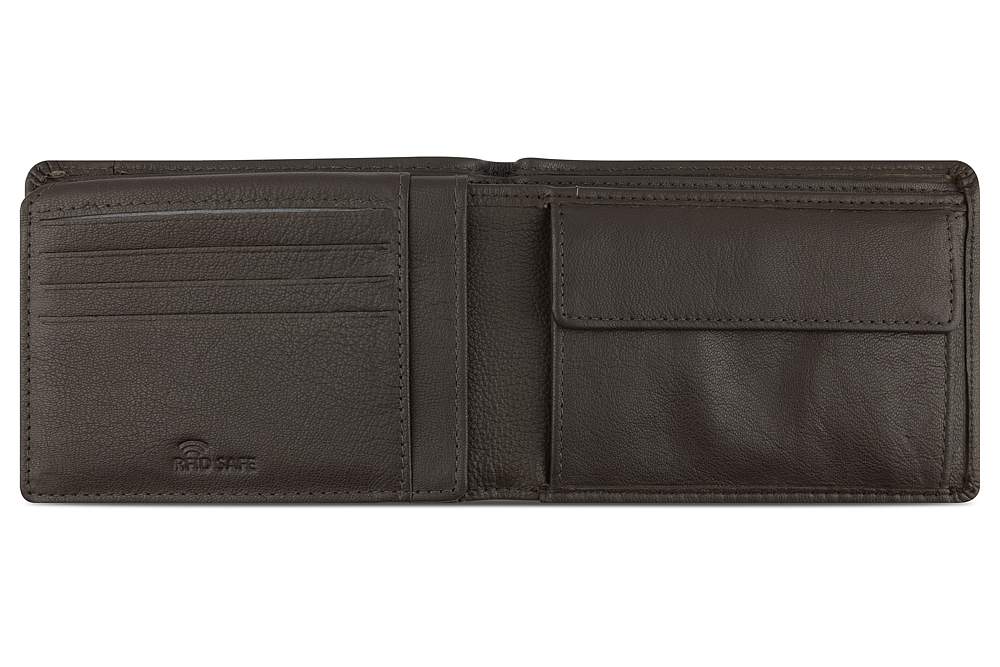 Функциональная организация: 2 отделения для банкнот, 8 слотов для карт, 4 кармана, отделение для монет, сетчатый карман, защита данных RFID.