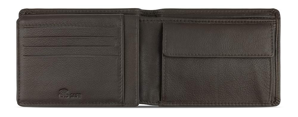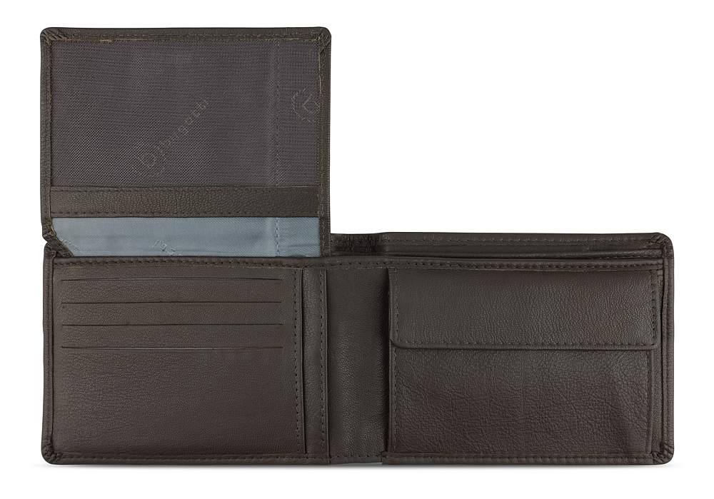 Функциональная организация: 2 отделения для банкнот, 8 слотов для карт, 4 кармана, отделение для монет, сетчатый карман, защита данных RFID.