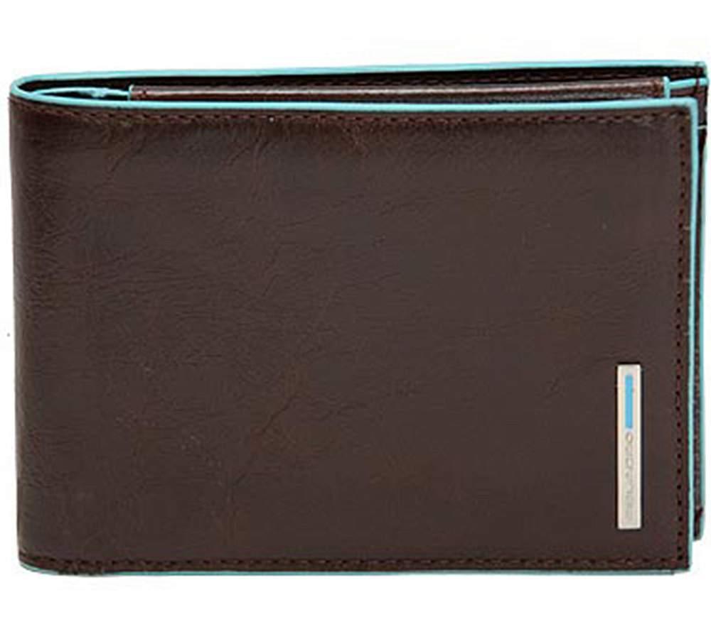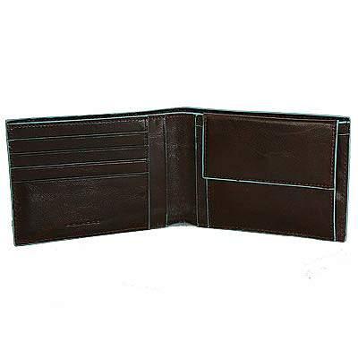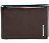 Портмоне с отделением для мелочи 12,5х9,5х0.5, натуральная кожа. Оторочка по канту - голубым. Два отделения для купюр, четыре отделения для кредитных карт, отделение для монет на кнопке. Фирменная упаковка.
