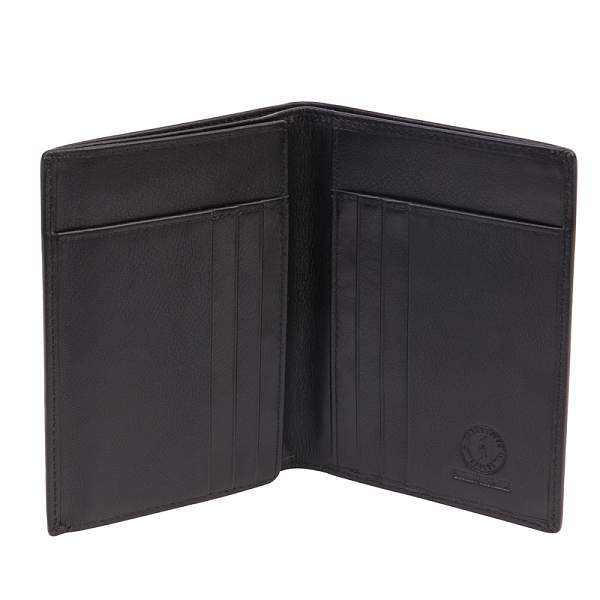 • Этот бумажник оснащен 6 отделениями для кредитных, дебетовых и остальных карт того же размера. Также он содержит 1 боковое и 1 вертикальное отделения для хранения фотографий, календарей и т.д. Отделение, разделенное на две секции, позволяет хранить банкноты в развернутом виде.