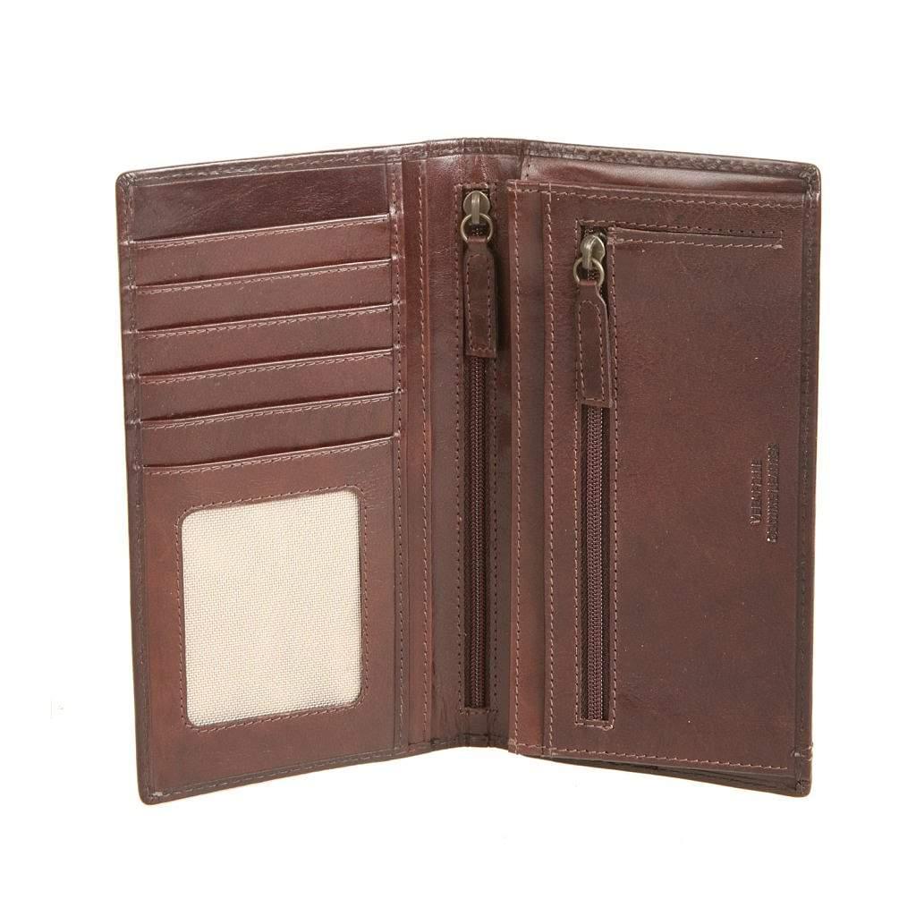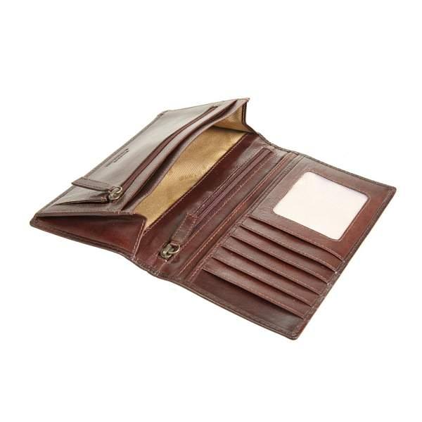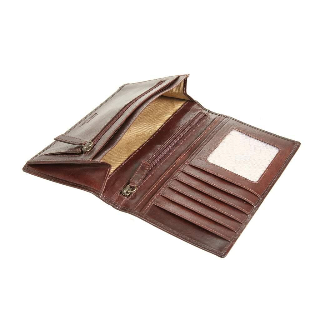 Внутри одно отделение для купюр, карман для документов на молнии, карман для монет на молнии, три кармана для документов, сетчатый карман и пять кармашков для пластиковых карт.
